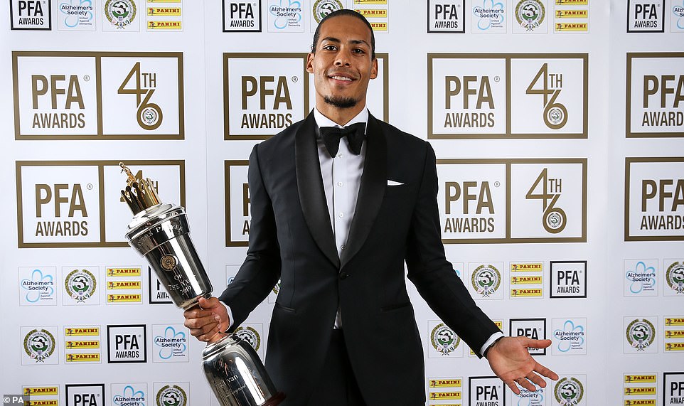 As revealed by Sportsmail on Wednesday, the Dutch defender succeeded team-mate Mohamed Salah in winning the award after seeing off tough competition from Manchester City forward Raheem Sterling, who collected his Young Player of the Year award, following in the footsteps of City team-mate Leroy Sane.