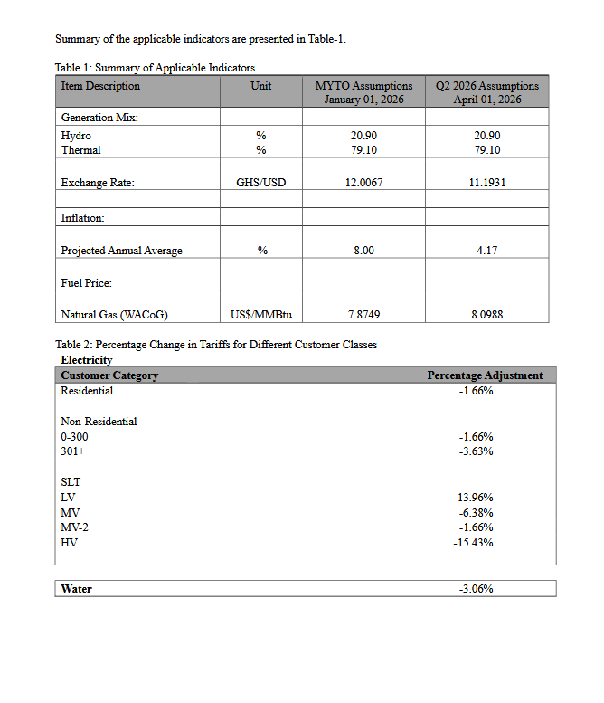 The Commission applied a projected Weighted Average Ghana Cedi-US Dollar Exchange Rate of GHS11.1931/US$1.0000 for the second Quarter of 2026.