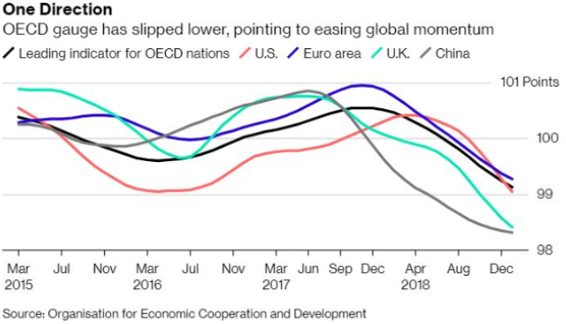 But the global economy is not out of the woods. The OECD’s latest composite leading indicator -- published Monday -- indicates easing momentum in the U.S., the U.K., Canada, and the euro area as a whole, including Germany and Italy. There are, however, signs of stabilization in China.