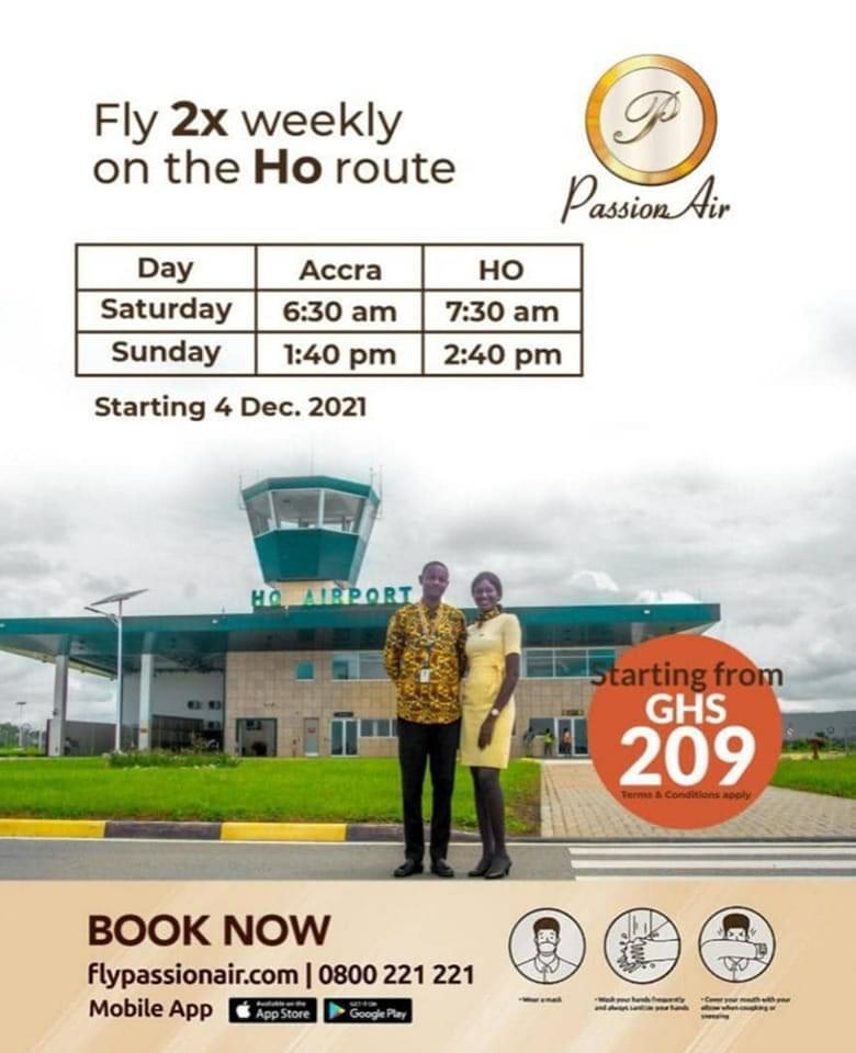 Domestic airline, PassionAir, will from Saturday, December 4, 2021, start operating flights to and from the Volta Regional capital, Ho.