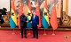 The chiffon dress, sequin tweed jacket and organza cape - all adorned with pearls, feathers and crystals - took some 2,000 hours to make.