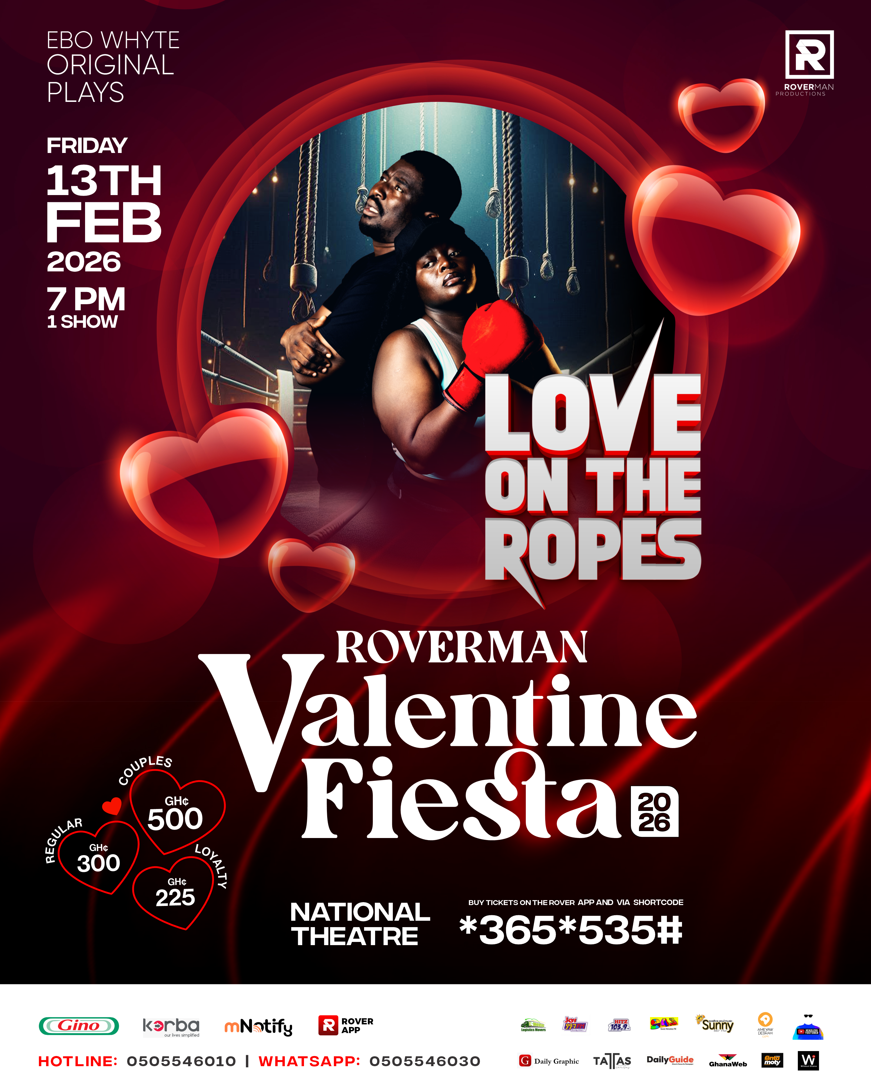 The National Theatre in Accra is set for one of the most talked-about theatrical Valentine weekends of 2026 as Roverman Productions presents its much-anticipated Valentine Fiesta featuring two explosive love stories.