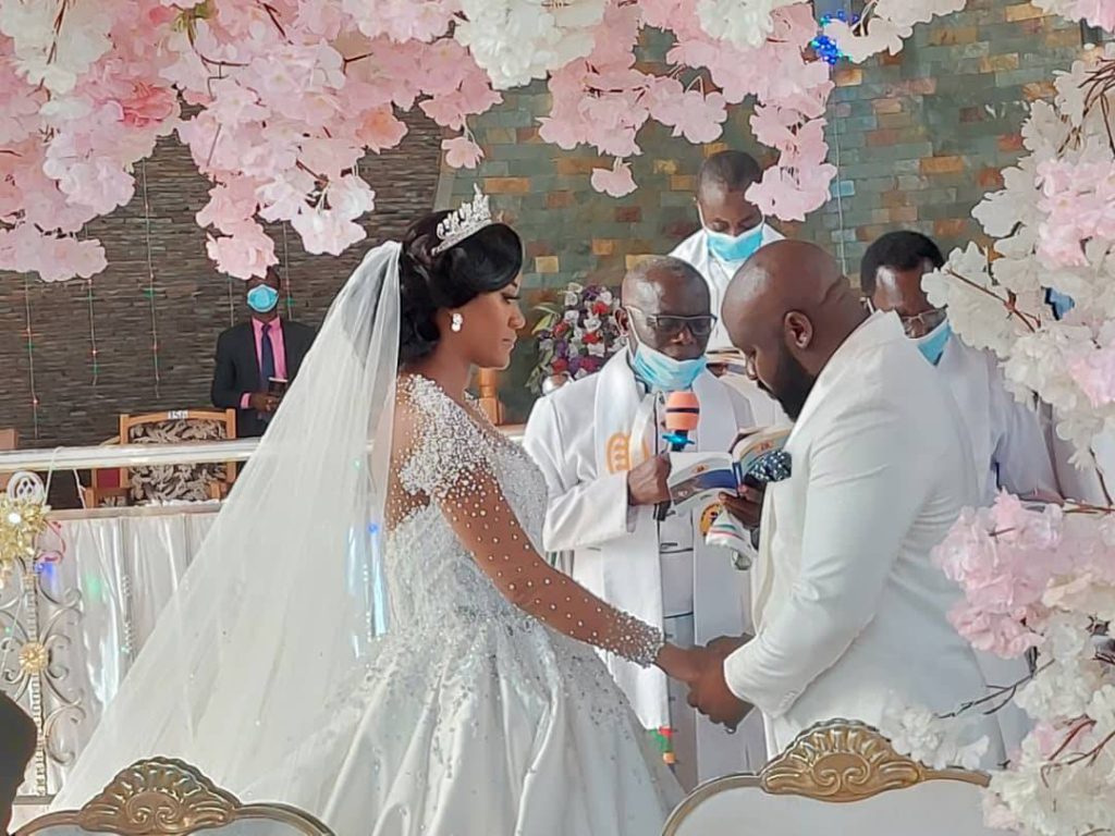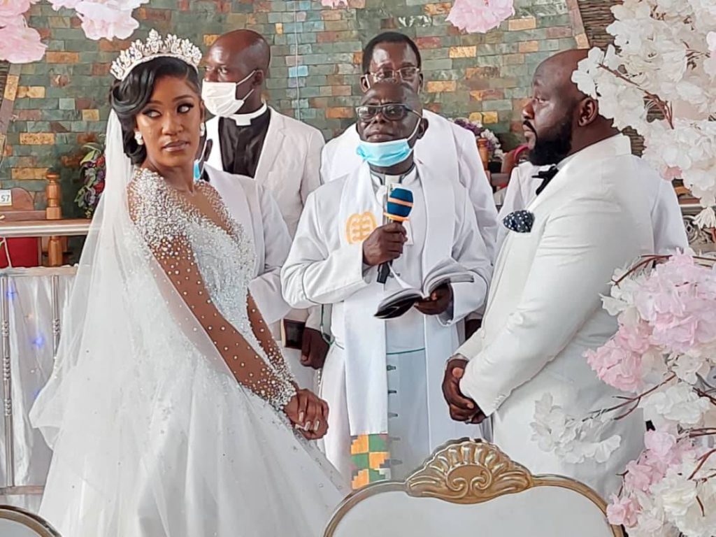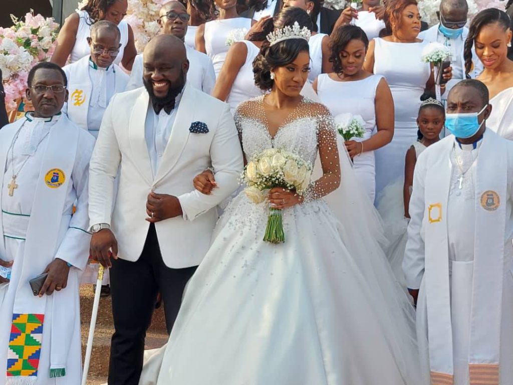 The white wedding followed a rich traditional wedding ceremony that took place on New Year’s eve at a private venue in Accra.