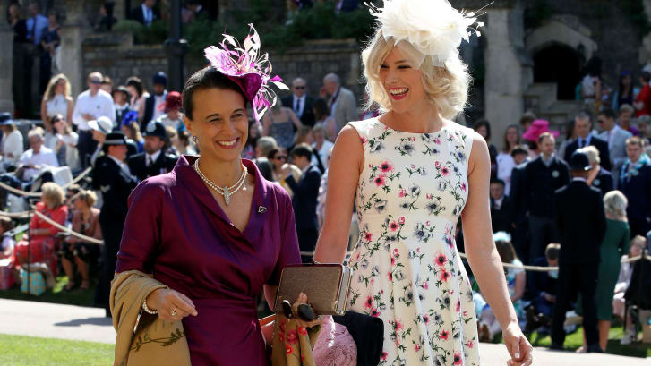 Many guests seem to have chosen bright, bold and energetic colours for the day, with canary yellow a standout choice.