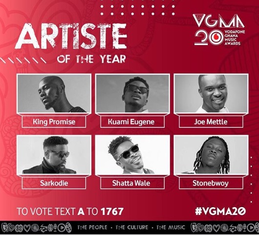 2019 VGMAs Artiste of the Year category saw new acts again as Kuami Eugene and King Promise make it to the category this year.