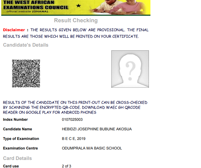 After years of beating down the odds Josephine Hebidzi, a 17-year-old girl acquired a good grade in the 2019 BECE.