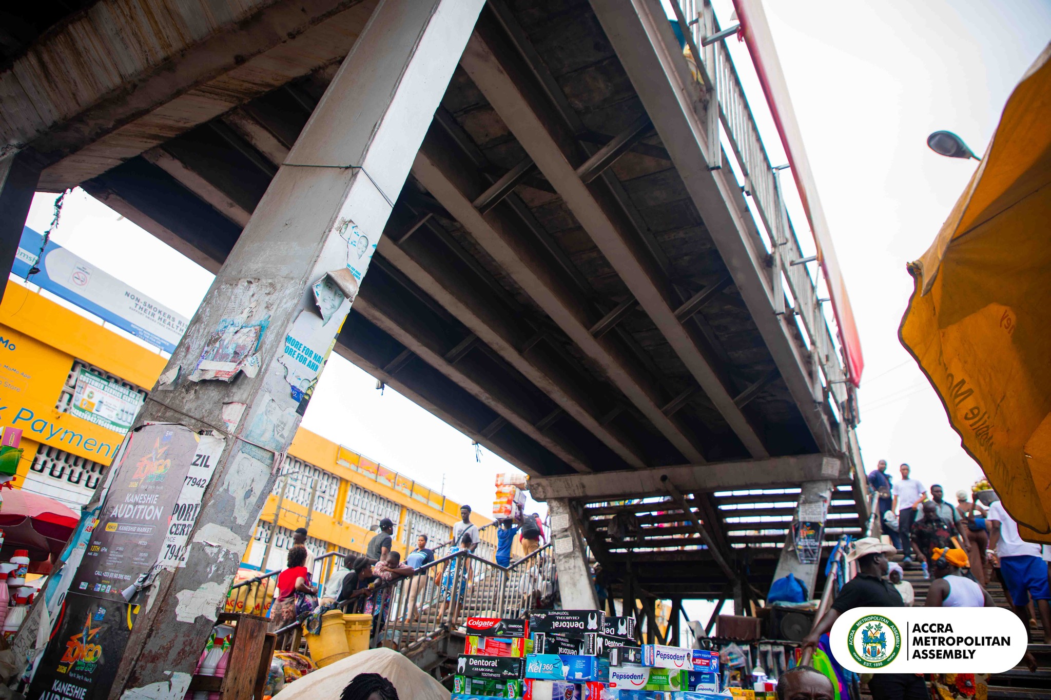 The Mayor of Accra, Hon. Michael Kpakpo Allotey has ordered the temporary closure of the Kaneshie footbridges following an inspection that revealed significant structural concerns.