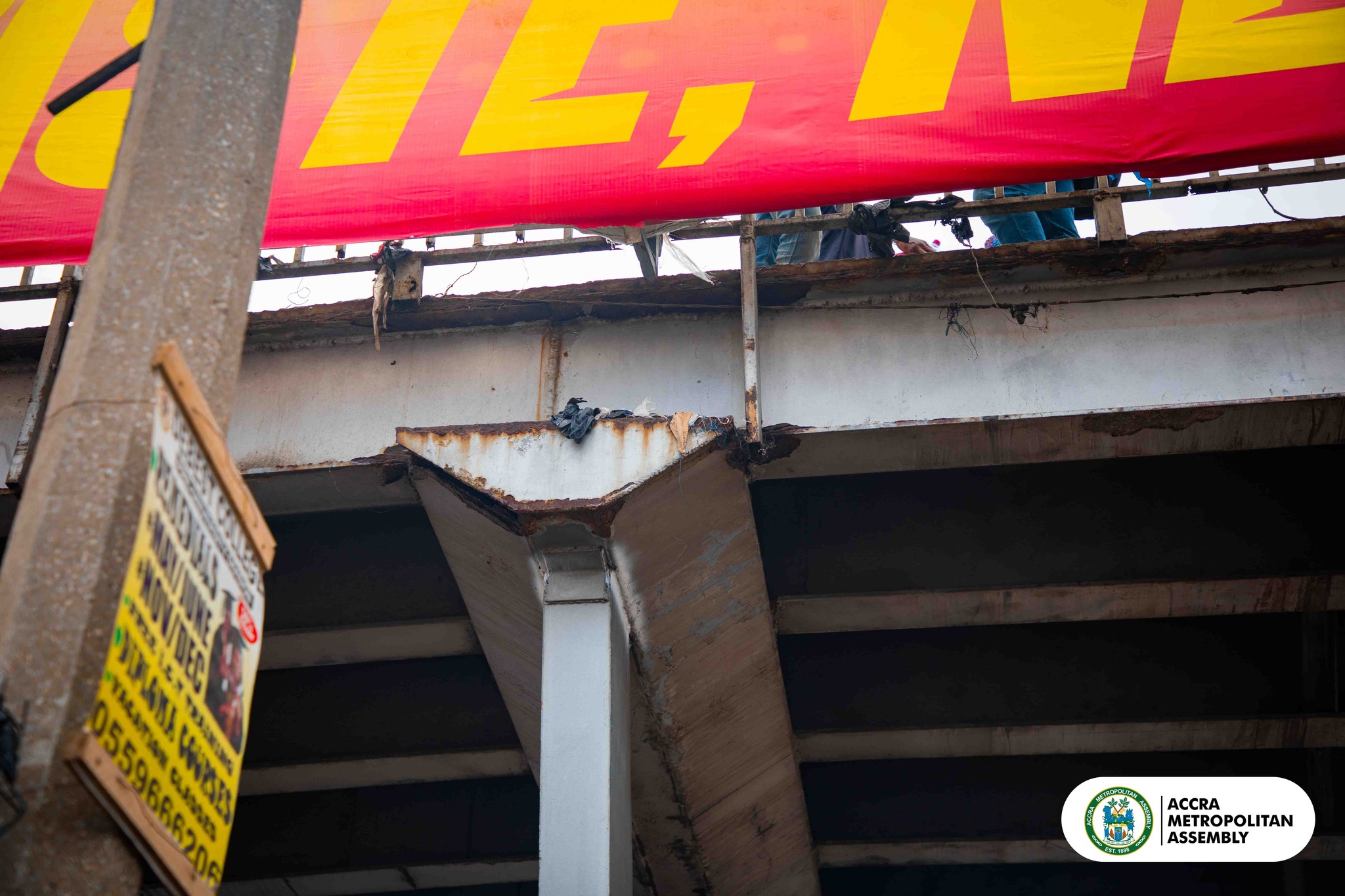 The Municipal Chief Executive (MCE) for the Ablekuma Central Municipal Assembly, Hon. Frank Nkansah who accompanied the Mayor, indicated that the persistent occupation of the footbridge by traders had made maintenance difficult over the years, leading to deterioration of critical components, including barriers and structural footings, with visible signs of rust and damage.