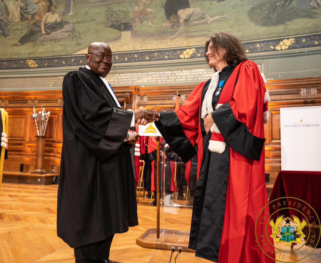 President Akufo-Addo has been presented with an honorary doctorate degree from the University of Sorbonne, in Paris, France, one of the most prestigious universities in Europe and the world.