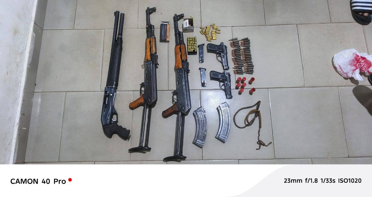 Several firearms and ammunition were also seized, including two AK-47 assault rifles, one pump-action gun, two pistols, 44 rounds of 32 ammunition, and 24 rounds of 9mm ammunition.