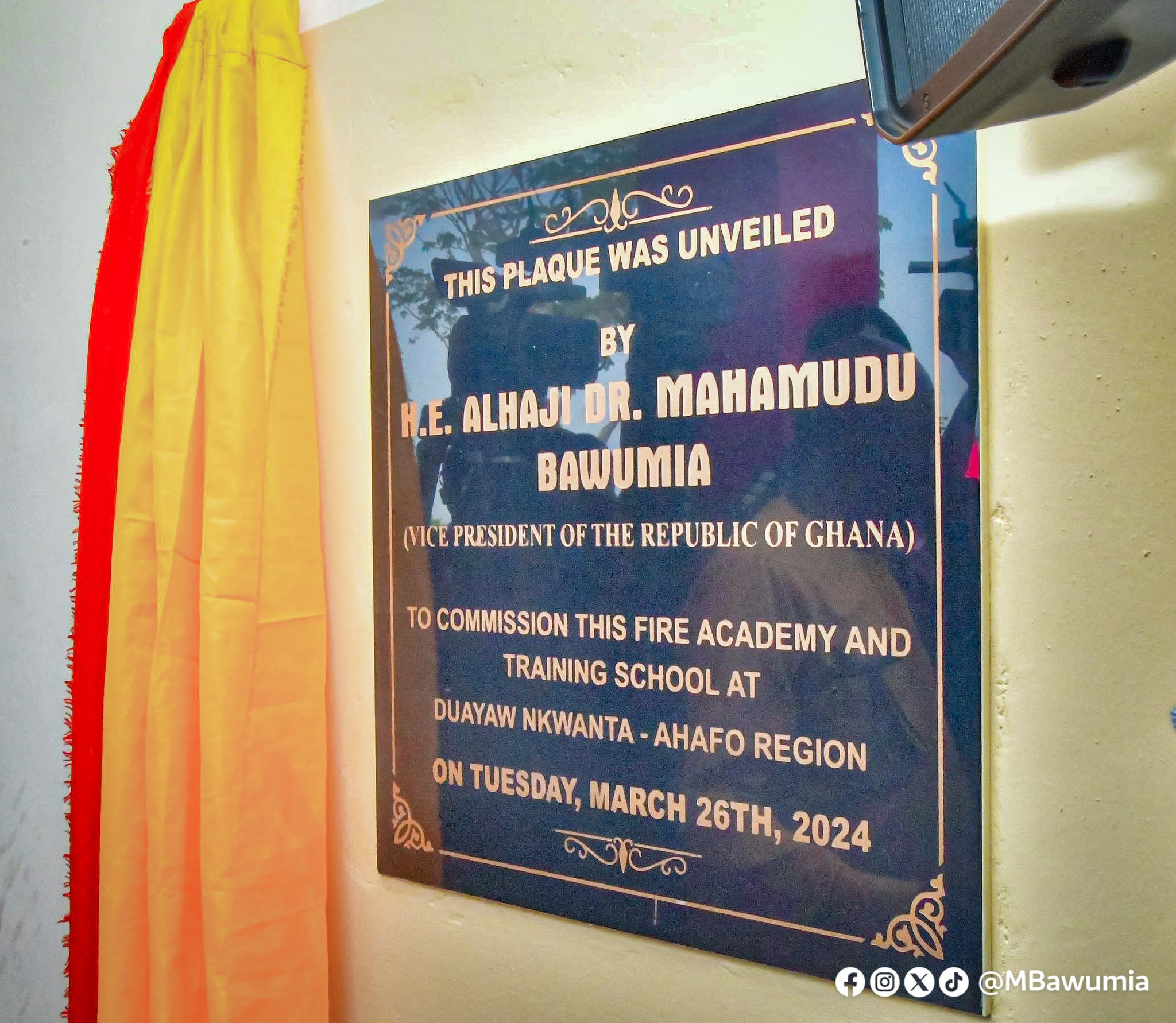 Vice President Dr Mahamudu Bawumia has commissioned the First Phase of the Fire Academy and Training School at Duayaw Nkwanta in the Ahafo Region.