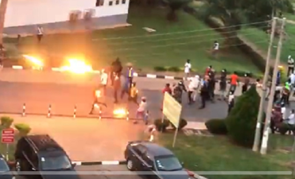 The disturbances, which began around 5 pm led to some school and private properties, particularly in front of the unity hall, being vandalized.
