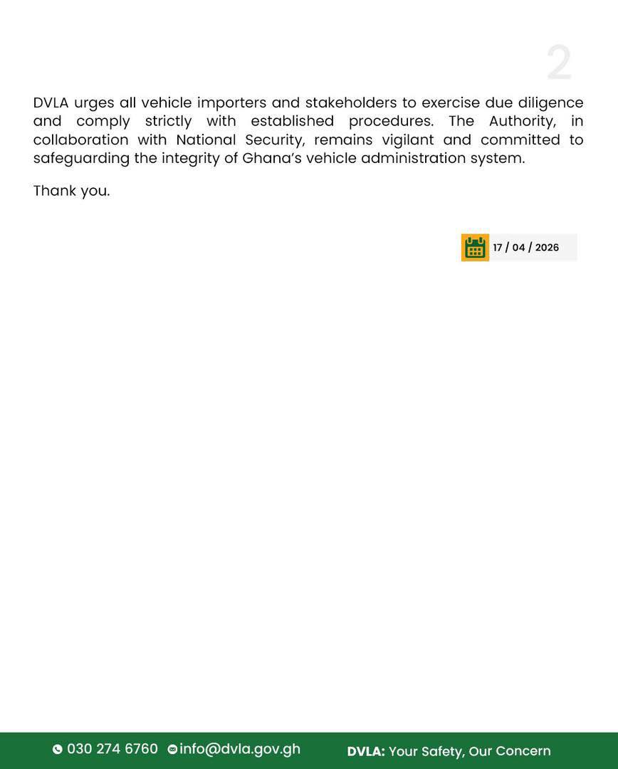 It further urged all vehicle importers and stakeholders to exercise due diligence and comply strictly with established procedures.
