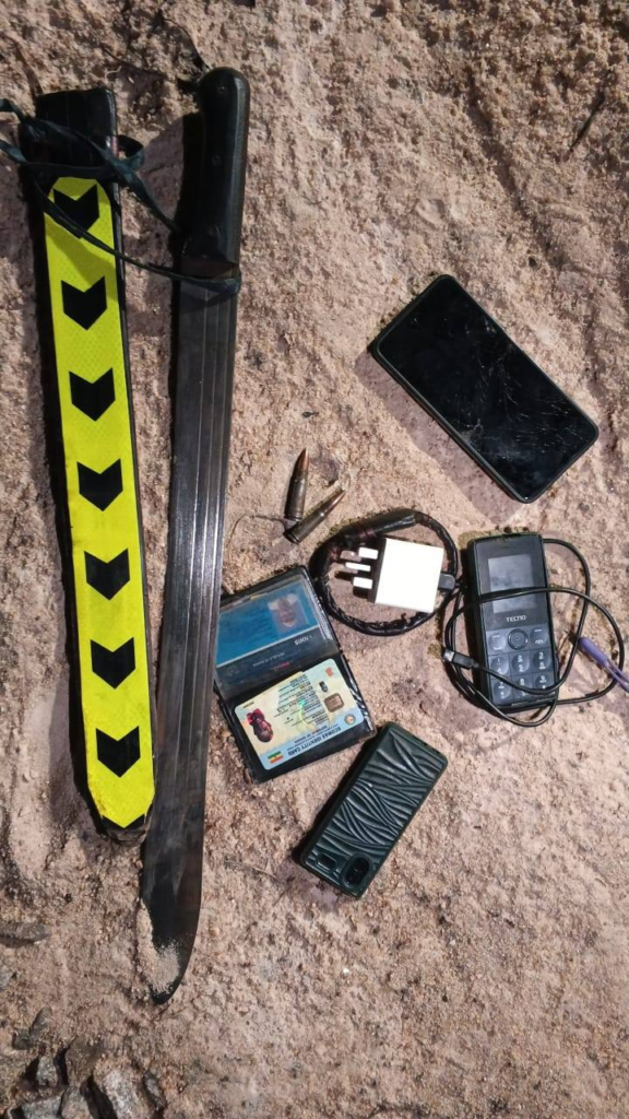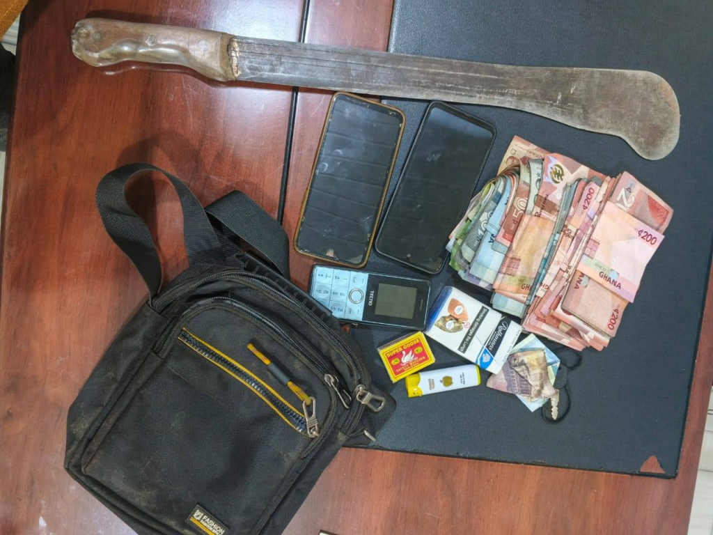 Items retrieved during the operation included two live AK-47 rounds, three cutlasses, GH¢15,717 in cash, eight mobile phones, a talisman, an ID card and a side bag.