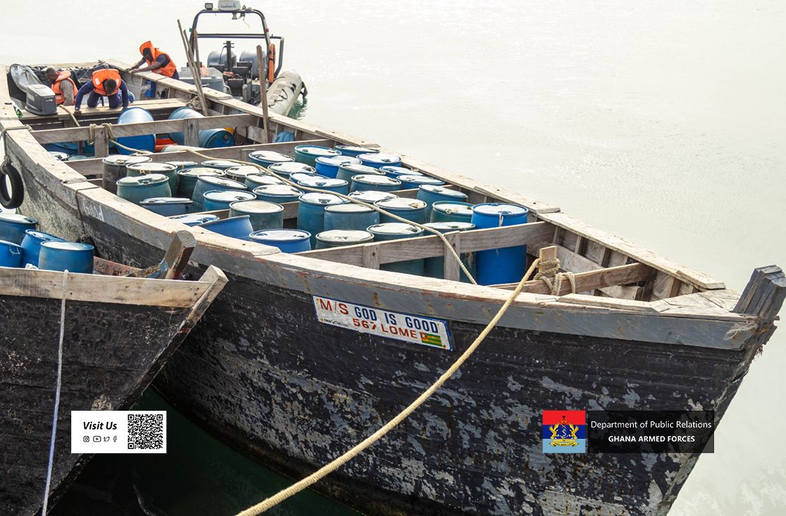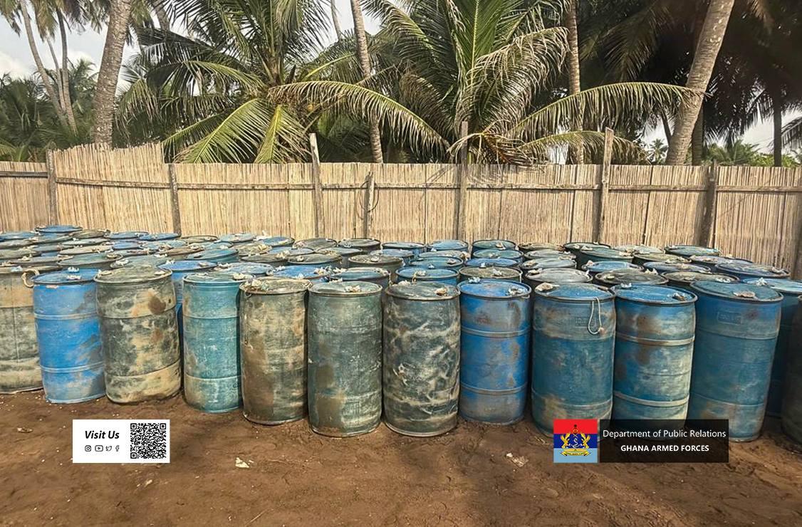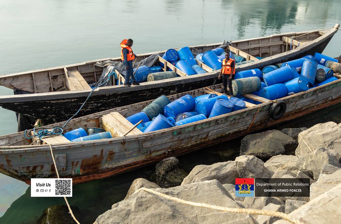 The Ghana Navy has dismantled several illegal fuel bunkering operations along the Volta Region coastline, seizing large quantities of fuel and equipment during two intelligence-led operations conducted earlier this week.