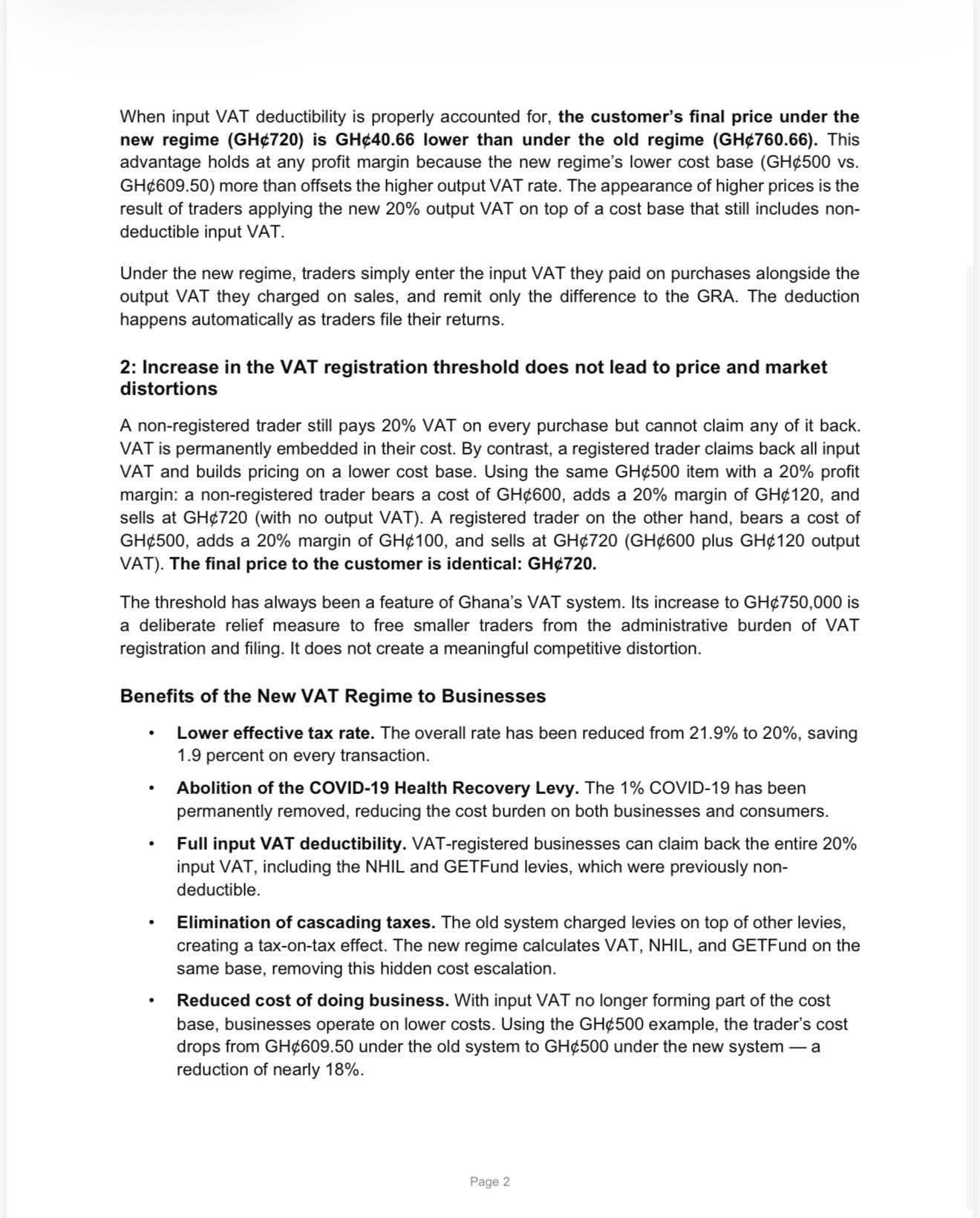 It explained that the 20 per cent rate was the result of a unified calculation comprising a 15 per cent standard VAT, a 2.5 per cent National Health Insurance Levy (NHIL), and a 2.5 per cent Ghana Education Trust Fund (GETFund) Levy.