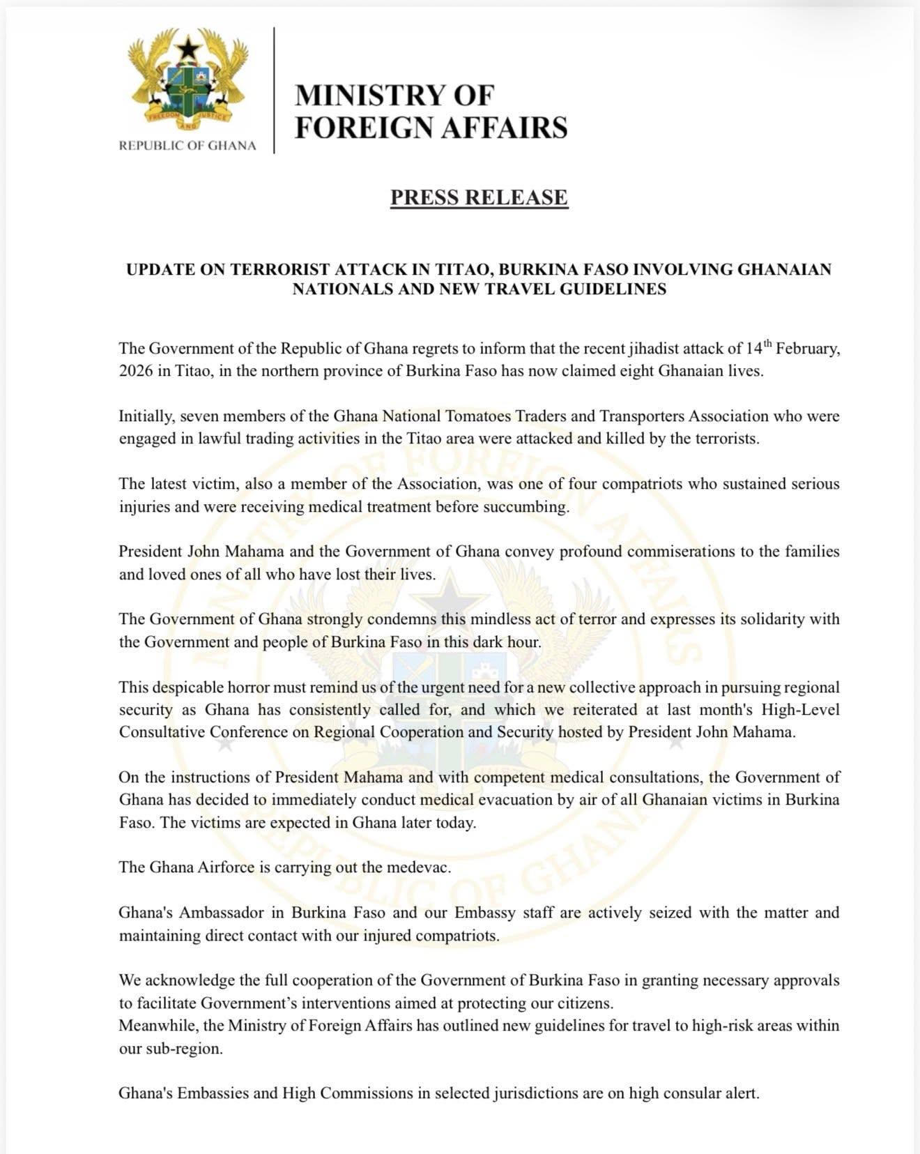 “The safety, security, and well-being of Ghanaians remain our utmost priority,” the Ministry stressed, adding that further updates will be provided as necessary.
