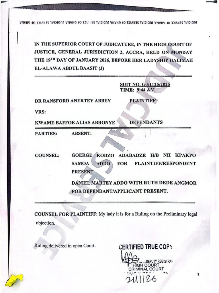 Dr. Abbey filed the suit on August 26, 2025, claiming that Abronye had made broadcasts and publications that were defamatory and damaging to his reputation. The suit sought personal redress for the alleged harm.