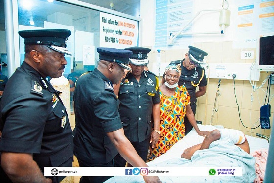 The Inspector-General of Police (IGP), Christian Tetteh Yohuno, has visited the Komfo Anokye Teaching Hospital in Kumasi to check on a police officer critically injured during the recent violent clashes between two rival groups at Sampa in the Bono Region.