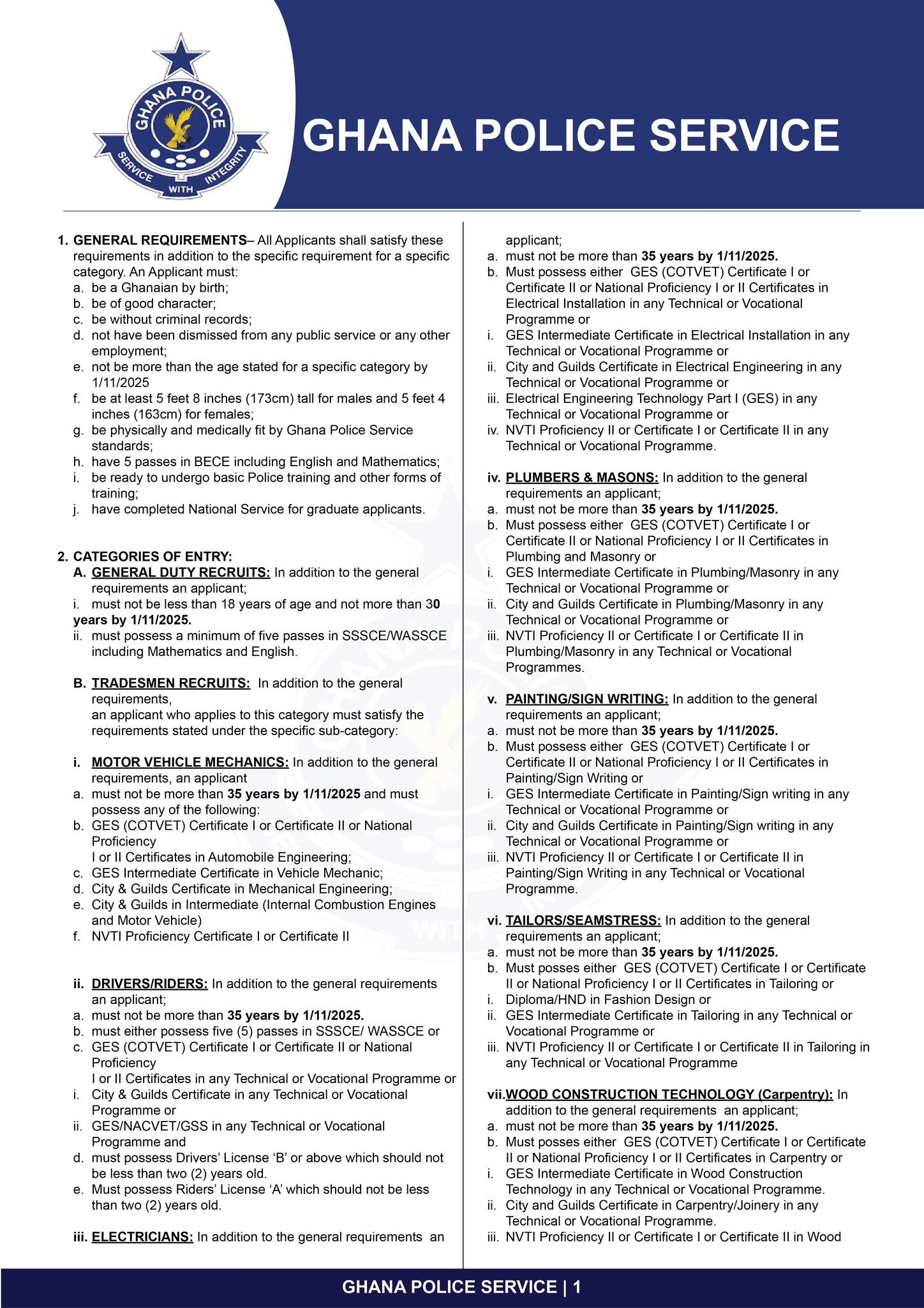 The Ministry encouraged disciplined and patriotic Ghanaians eager to serve the nation with honour, integrity, and professionalism to apply within the one-month window.