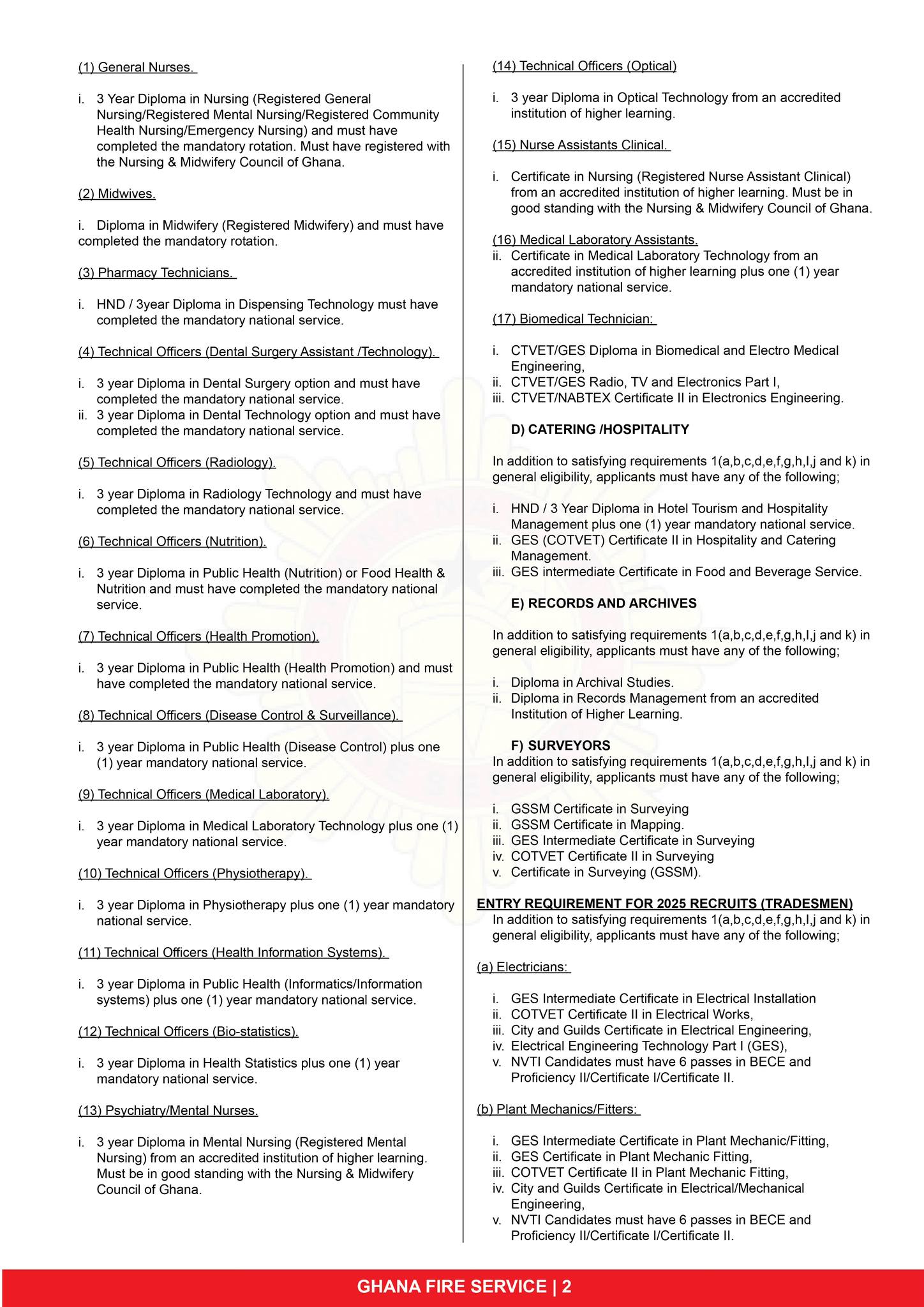 The Ministry of the Interior has announced the opening of recruitment for Ghana’s internal security agencies, running from November 15 to December 15, 2025.