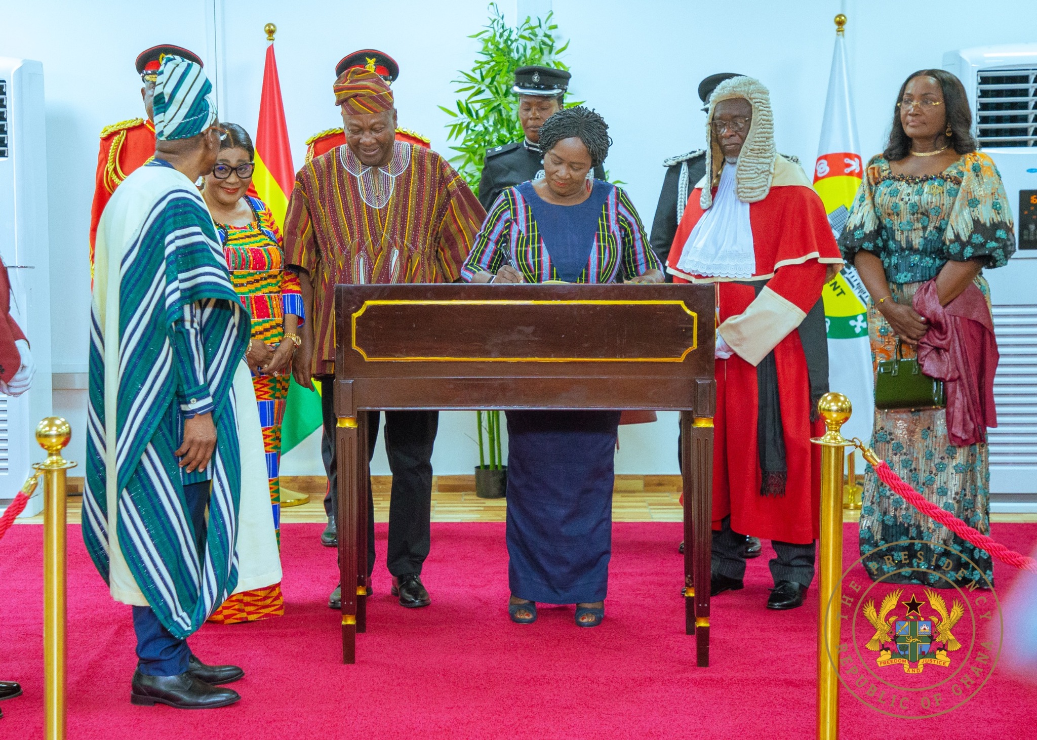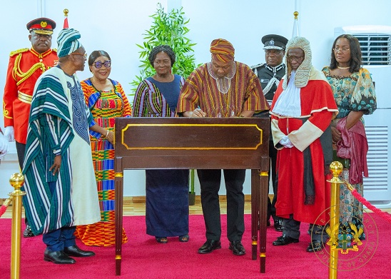 President John Dramani Mahama together with Vice President Jane Naana Opoku-Agyemang signed the Visitors Book following his delivery of the 2026 State of the Nation Address.