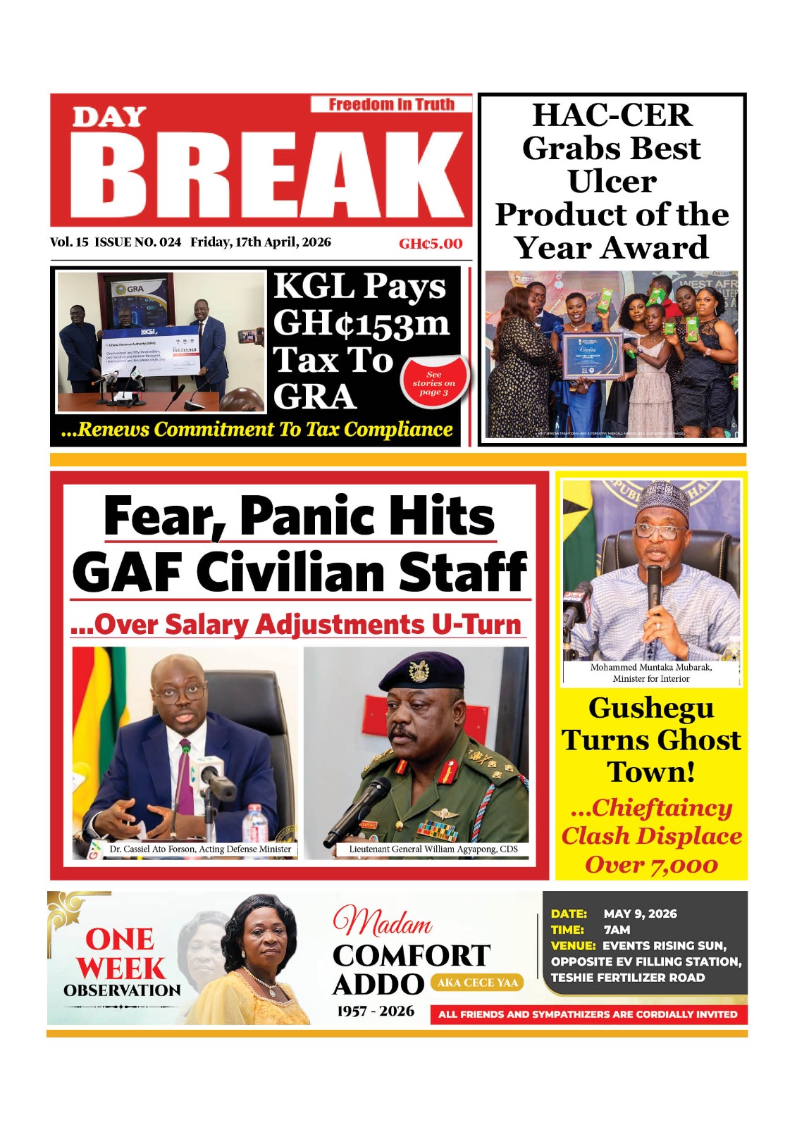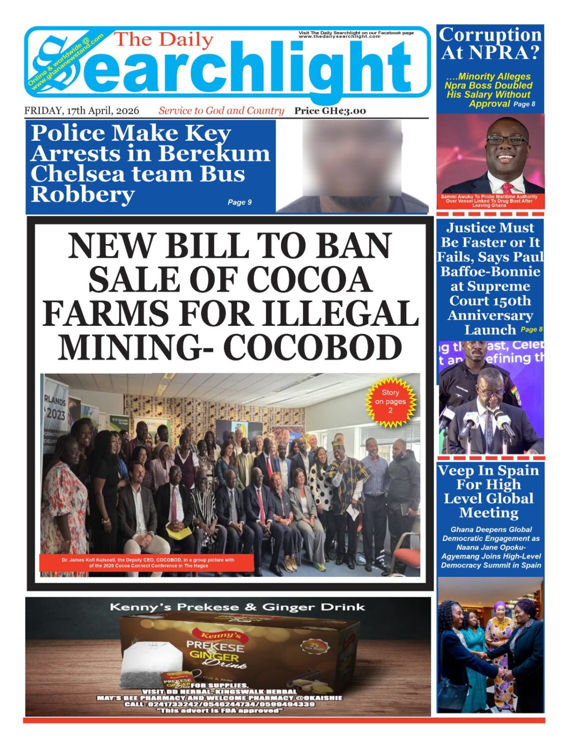 Newspaper headlines: Friday, April 17, 2026 Date: 17 April 2026 By Vincent Ashitey Category: general news Shares Share Tweet Email Share Here are the front pages of some of Ghana’s newspapers today.