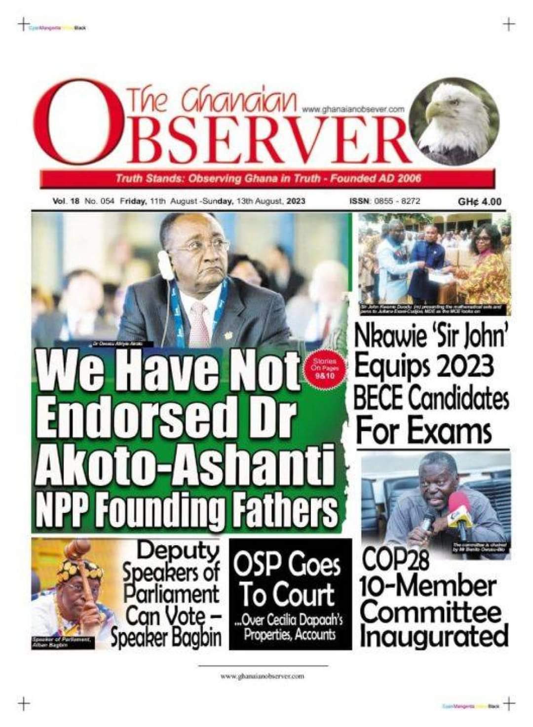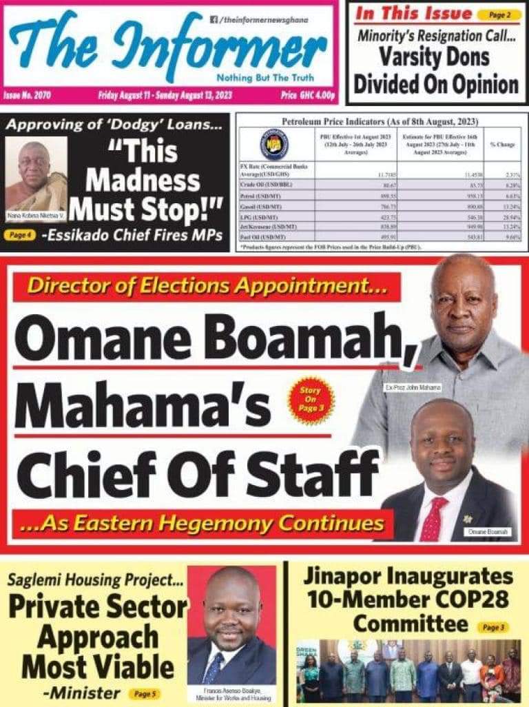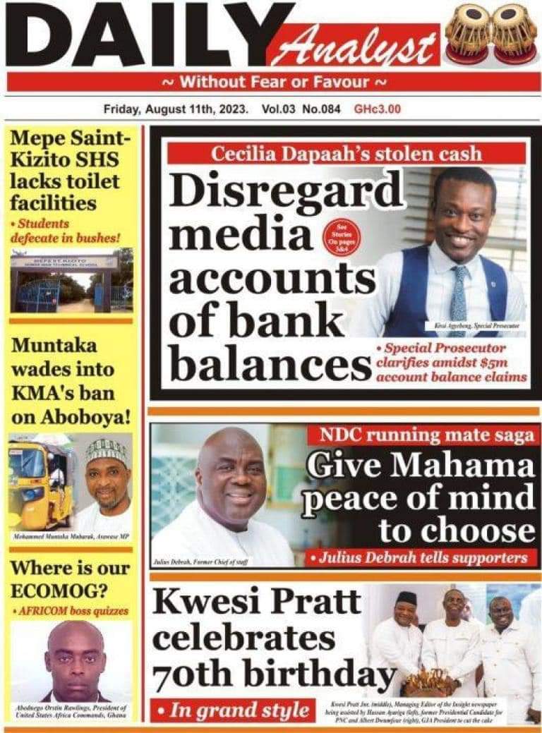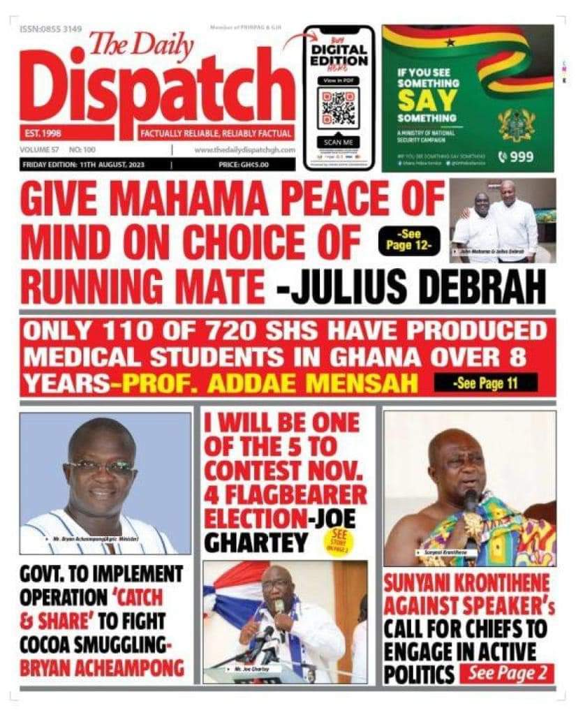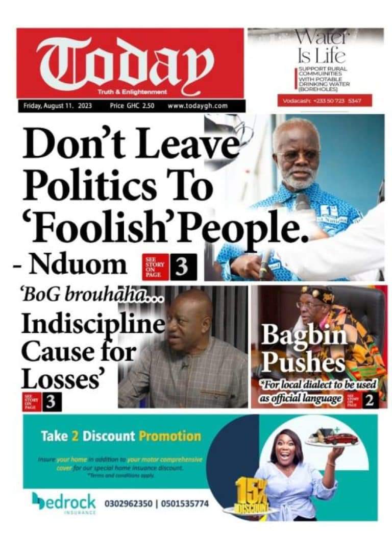Newspaper headlines: Friday, August 11, 2023 Date: 11 August 2023 By Vincent Ashitey Category: general news Shares Share Tweet Email Share Here are the front pages of some of Ghana’s newspapers today.