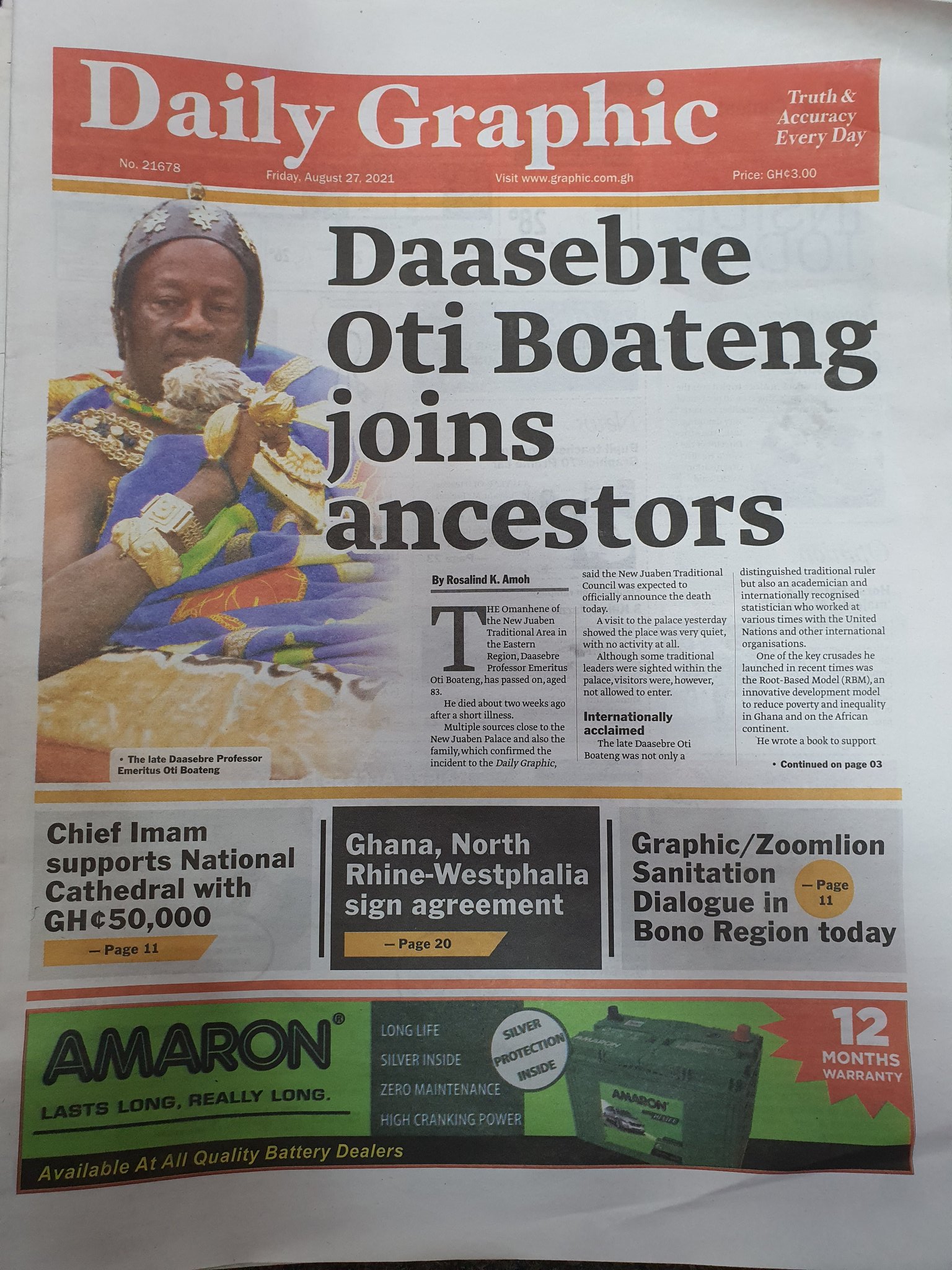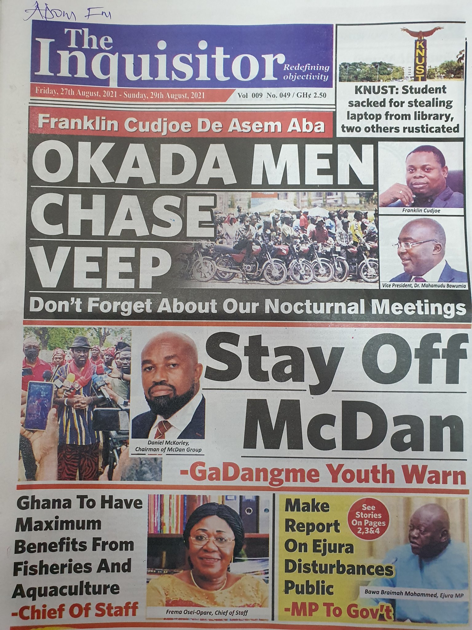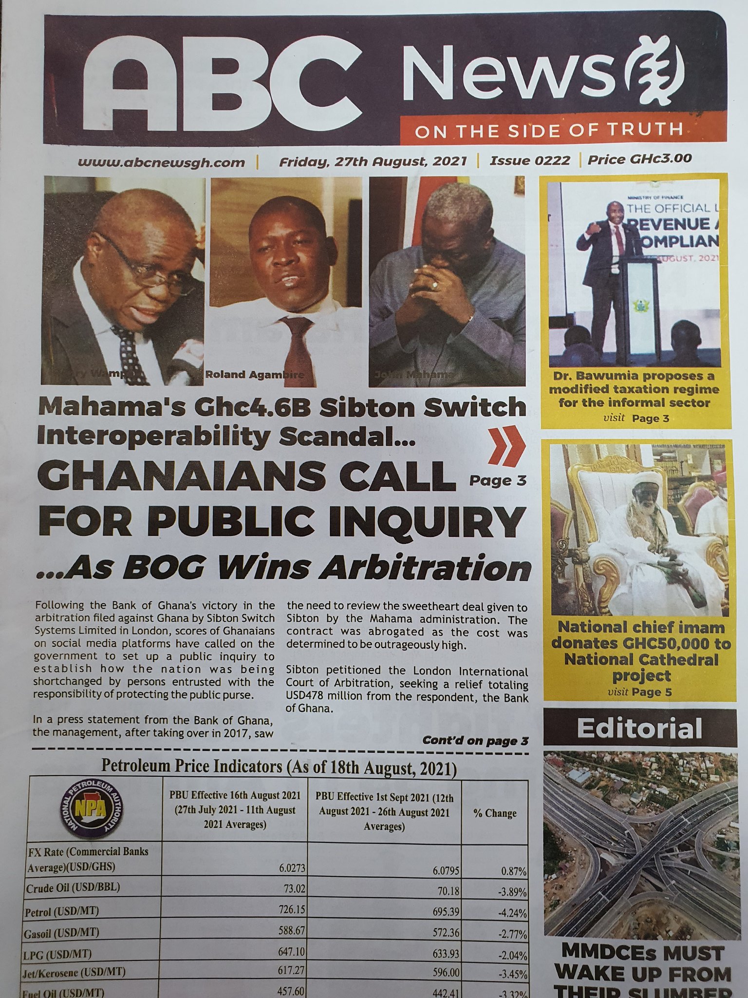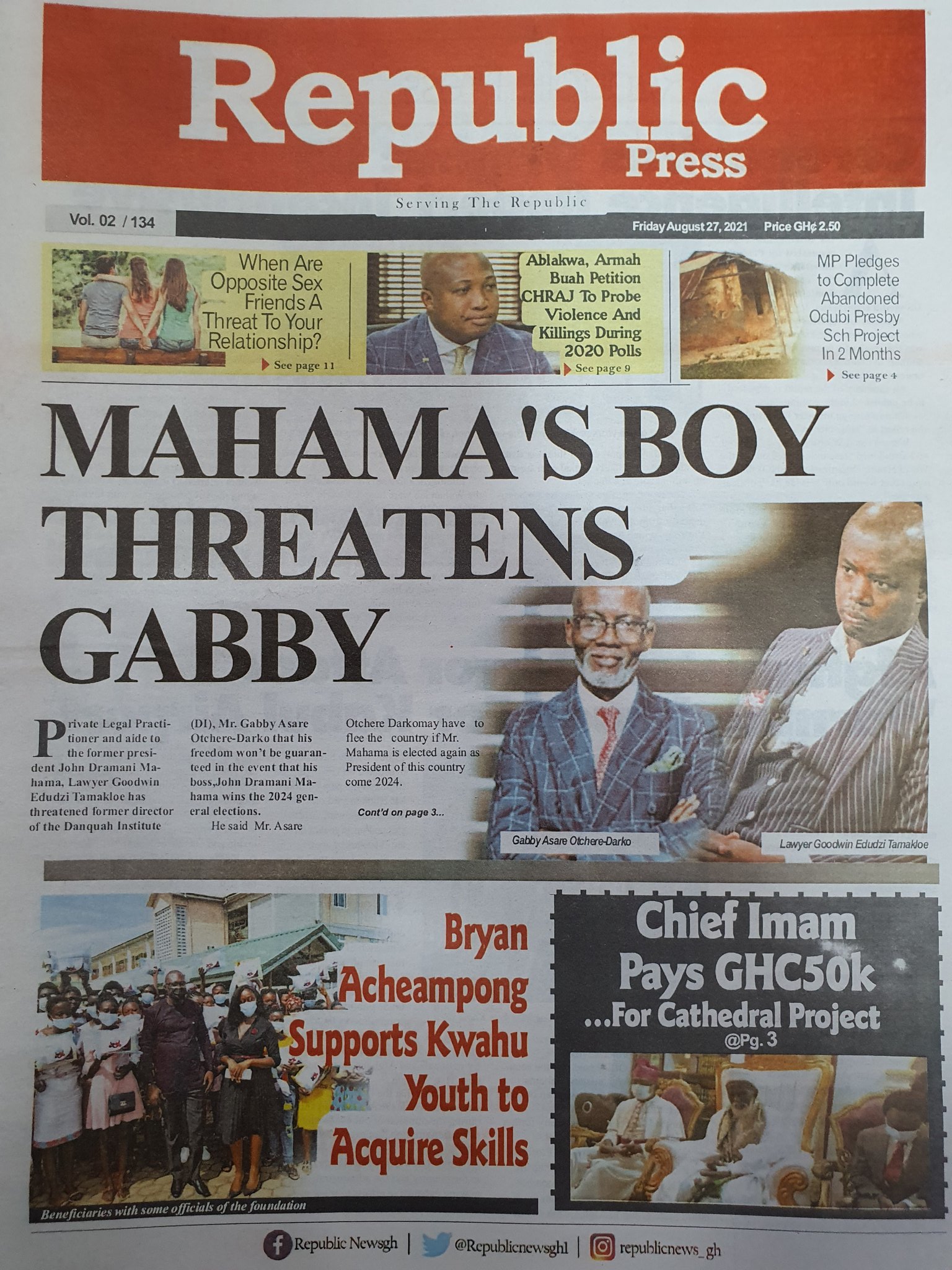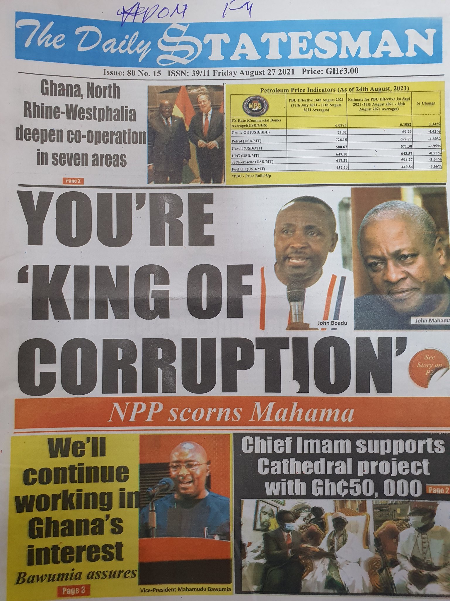Newspaper headlines: Friday, August 27, 2021 Date: 27 August 2021 By Primenewsghana.com Category: general news Newspaper headlines Shares Share Tweet Email Share Here are the front pages of some of Ghana's newspapers today.