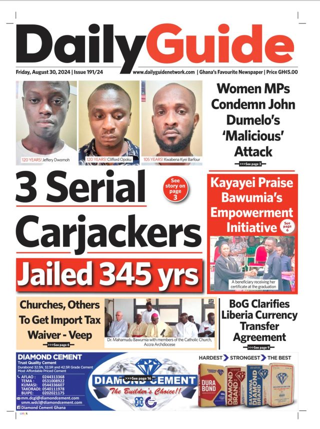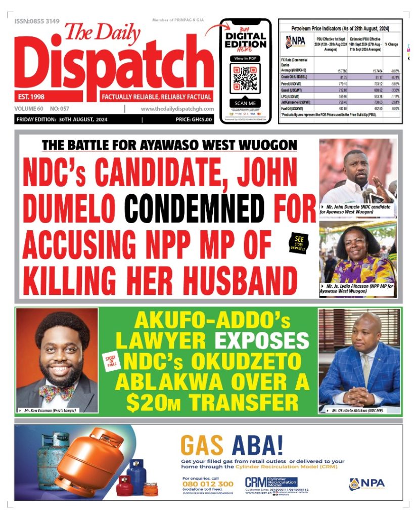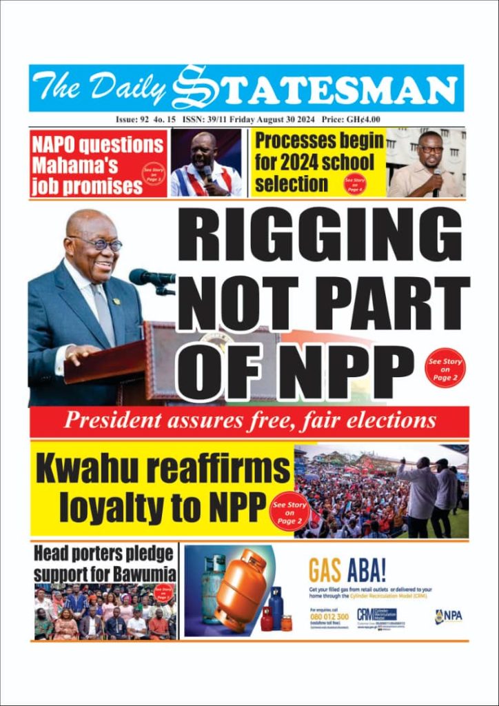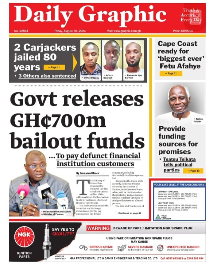 Newspaper headlines: Friday, August 30, 2024 Date: 30 August 2024 By Vincent Ashitey Category: general news Shares Share Tweet Email Share Here are the front pages of some of Ghana’s newspapers today.