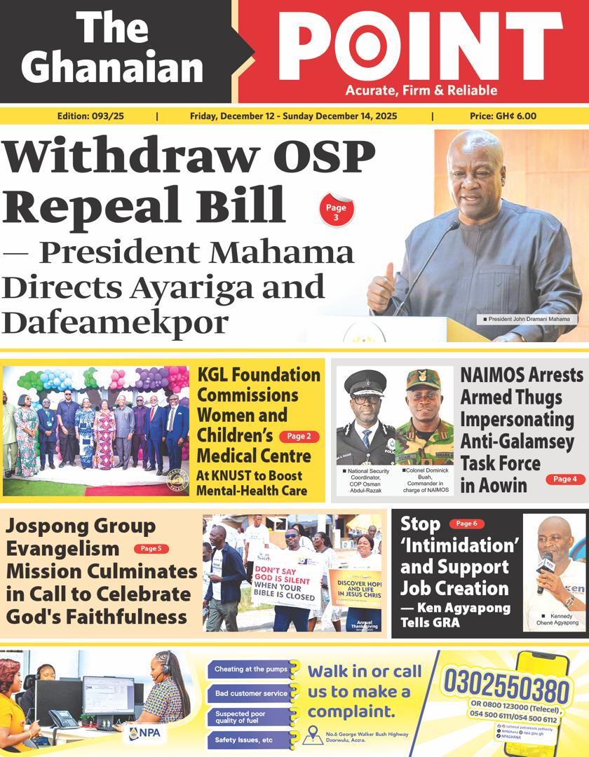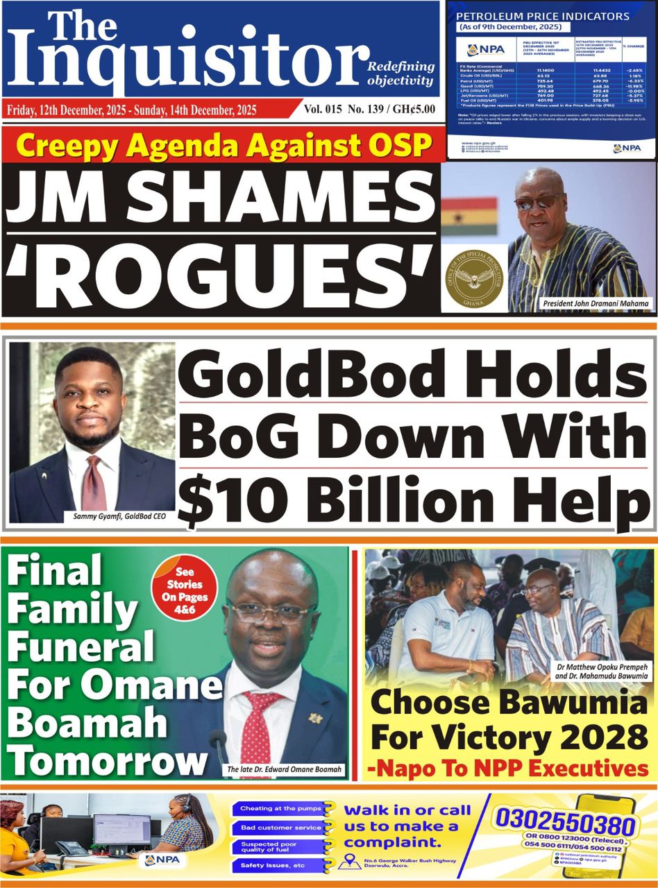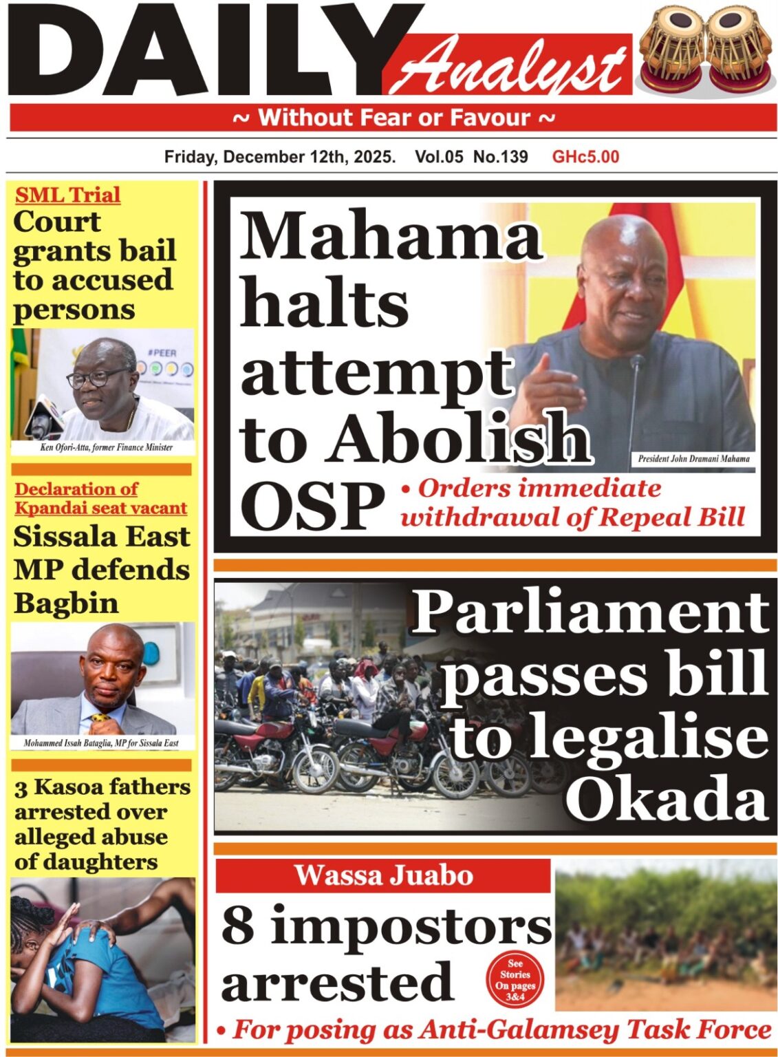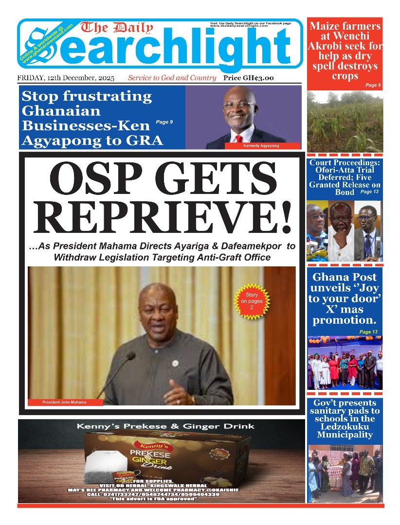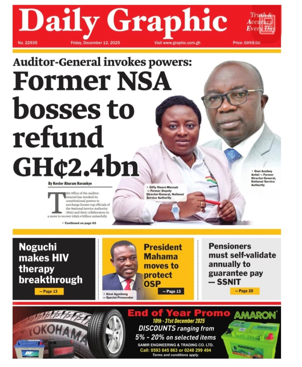 Newspaper headlines: Friday, December 12, 2025 Date: 12 December 2025 By Vincent Ashitey Category: general news Shares Share Tweet Email Share Here are the front pages of some of Ghana’s newspapers today.