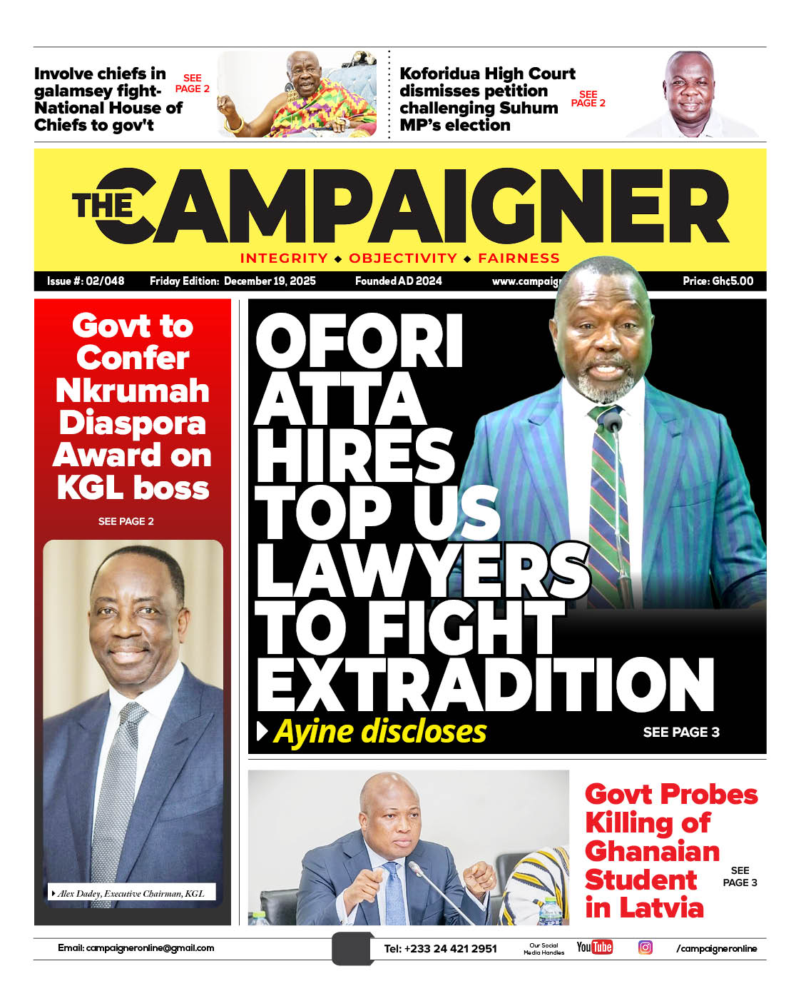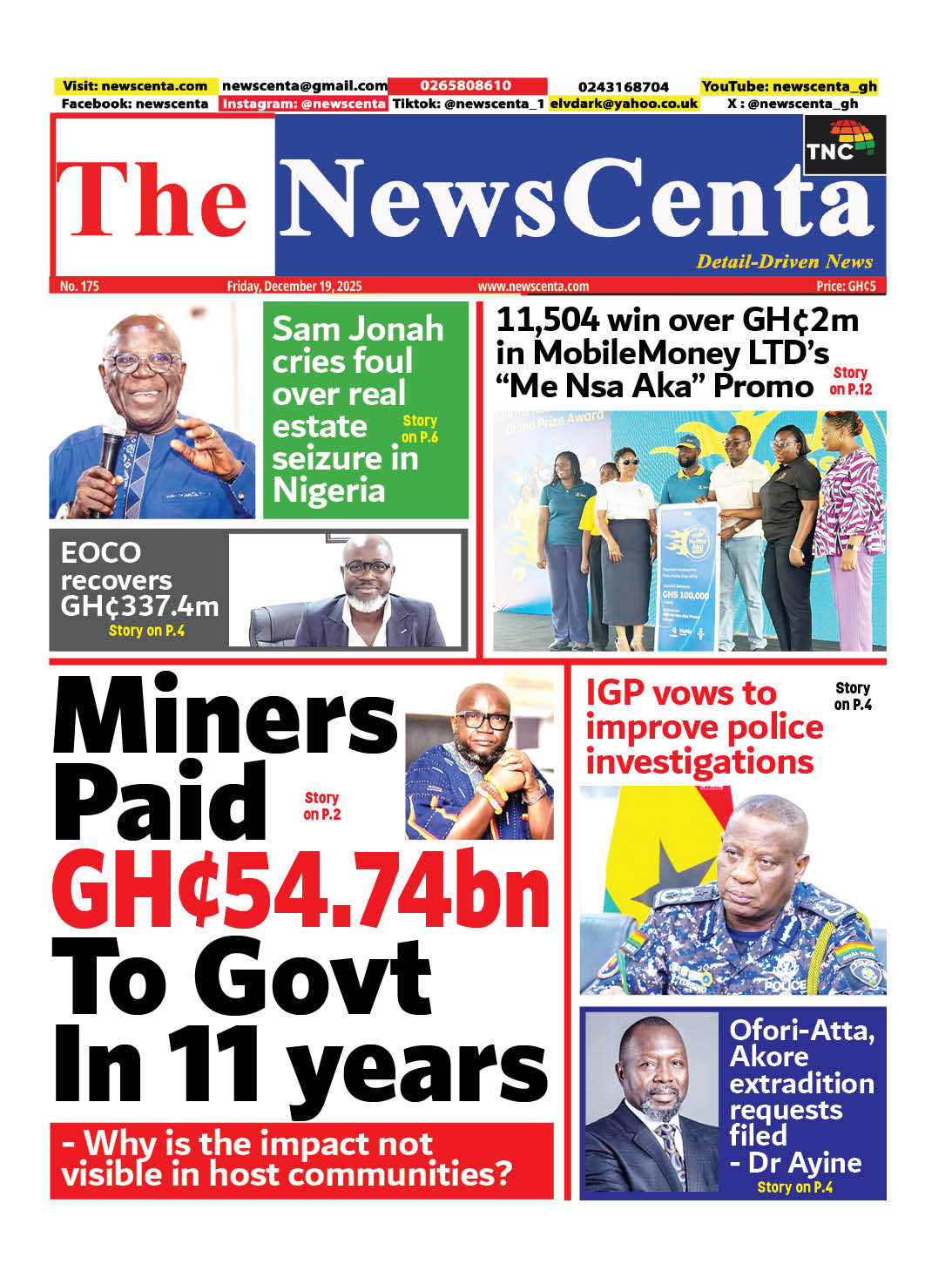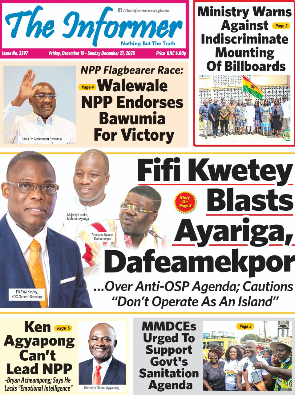 Newspaper headlines: Friday, December 19, 2025 Date: 19 December 2025 By Vincent Ashitey Category: general news Shares Share Tweet Email Share Here are the front pages of some of Ghana’s newspapers today.