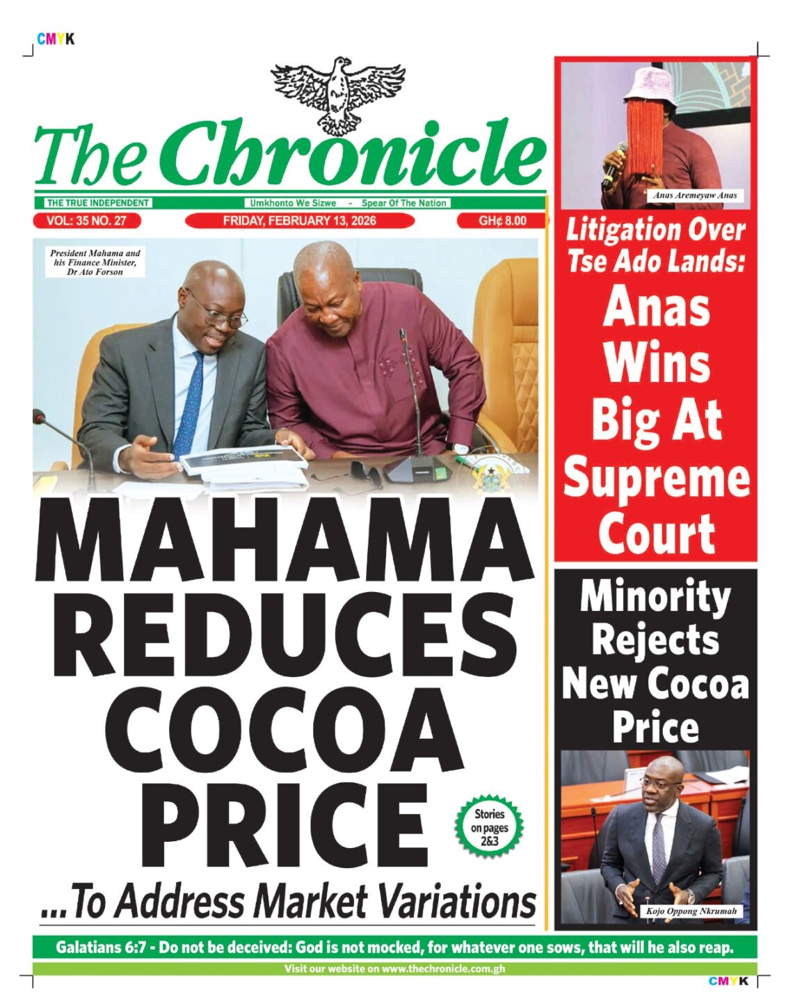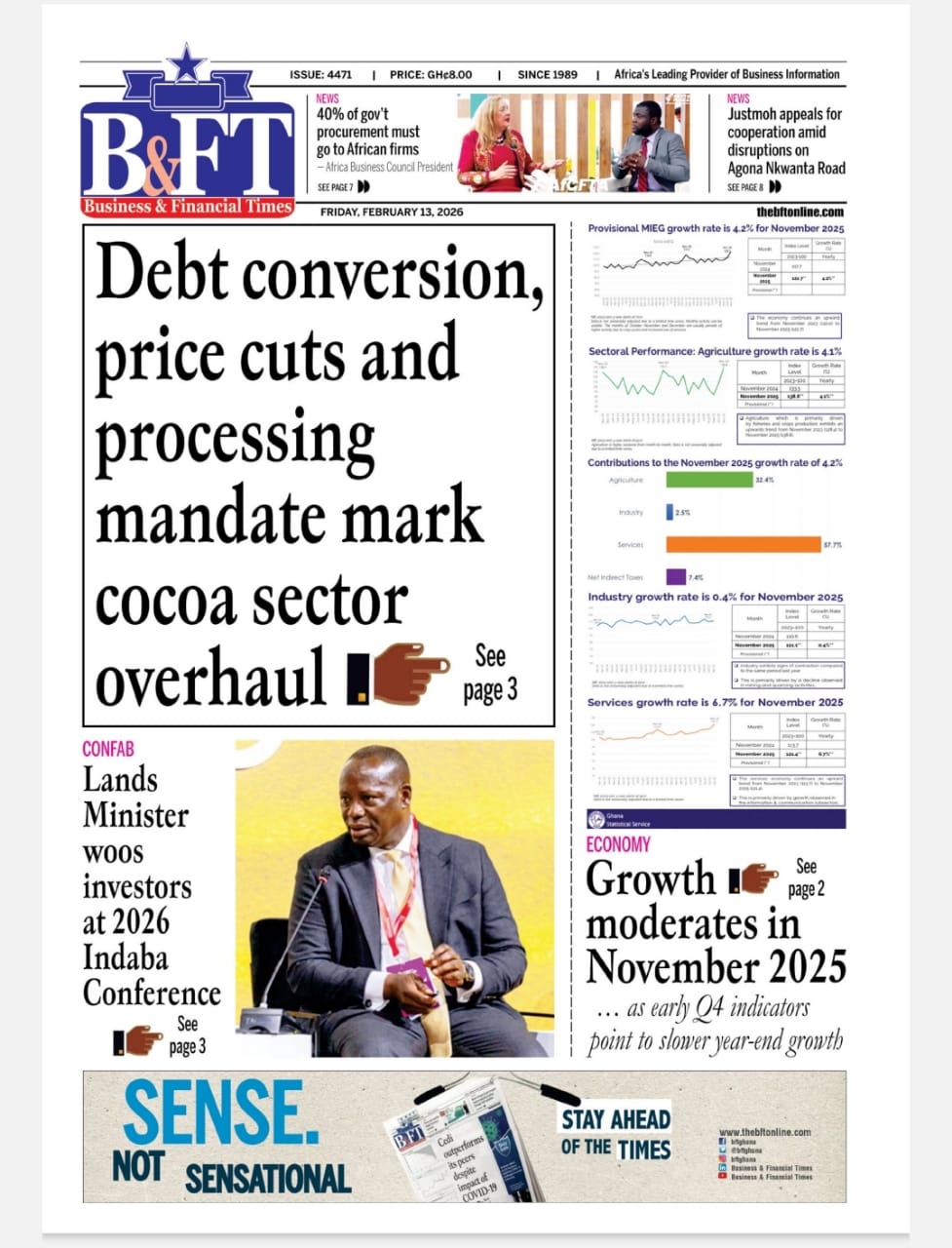 Newspaper headlines: Friday, February 13, 2026 Date: 13 February 2026 By Vincent Ashitey Category: general news Shares Share Tweet Email Share Here are the front pages of some of Ghana’s newspapers today.