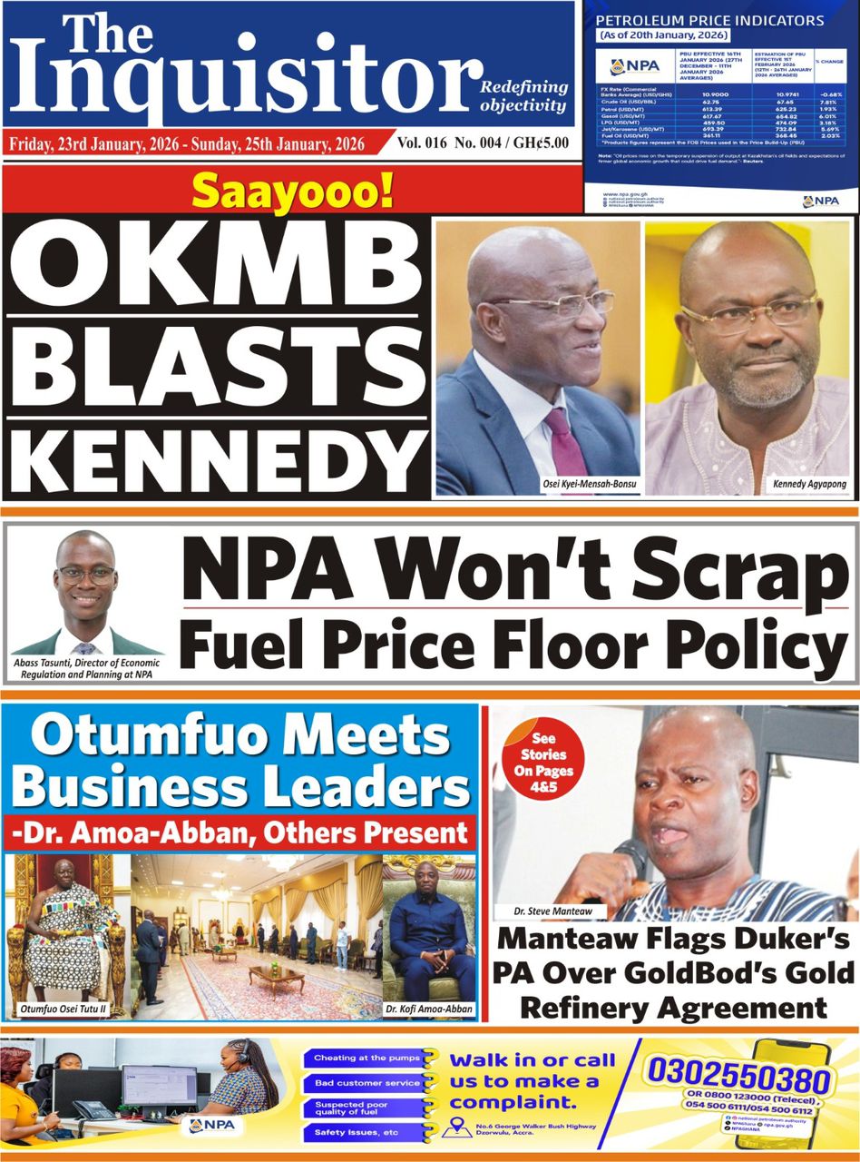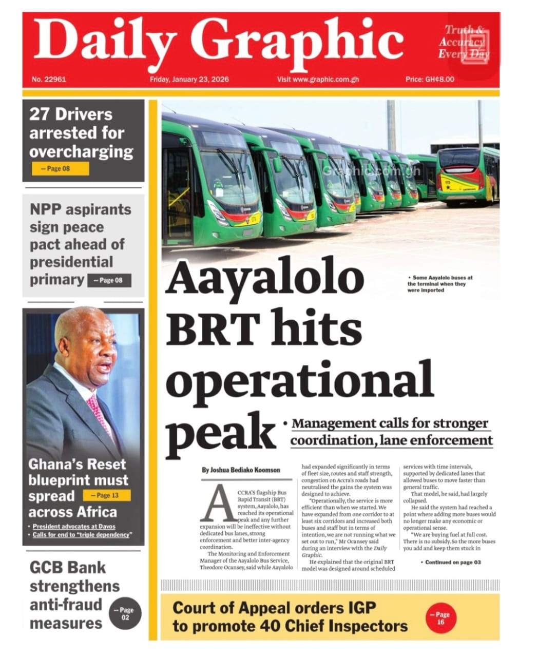 Newspaper headlines: Friday, January 23, 2026 Date: 23 January 2026 By Vincent Ashitey Category: general news Shares Share Tweet Email Share Here are the front pages of some of Ghana’s newspapers today.