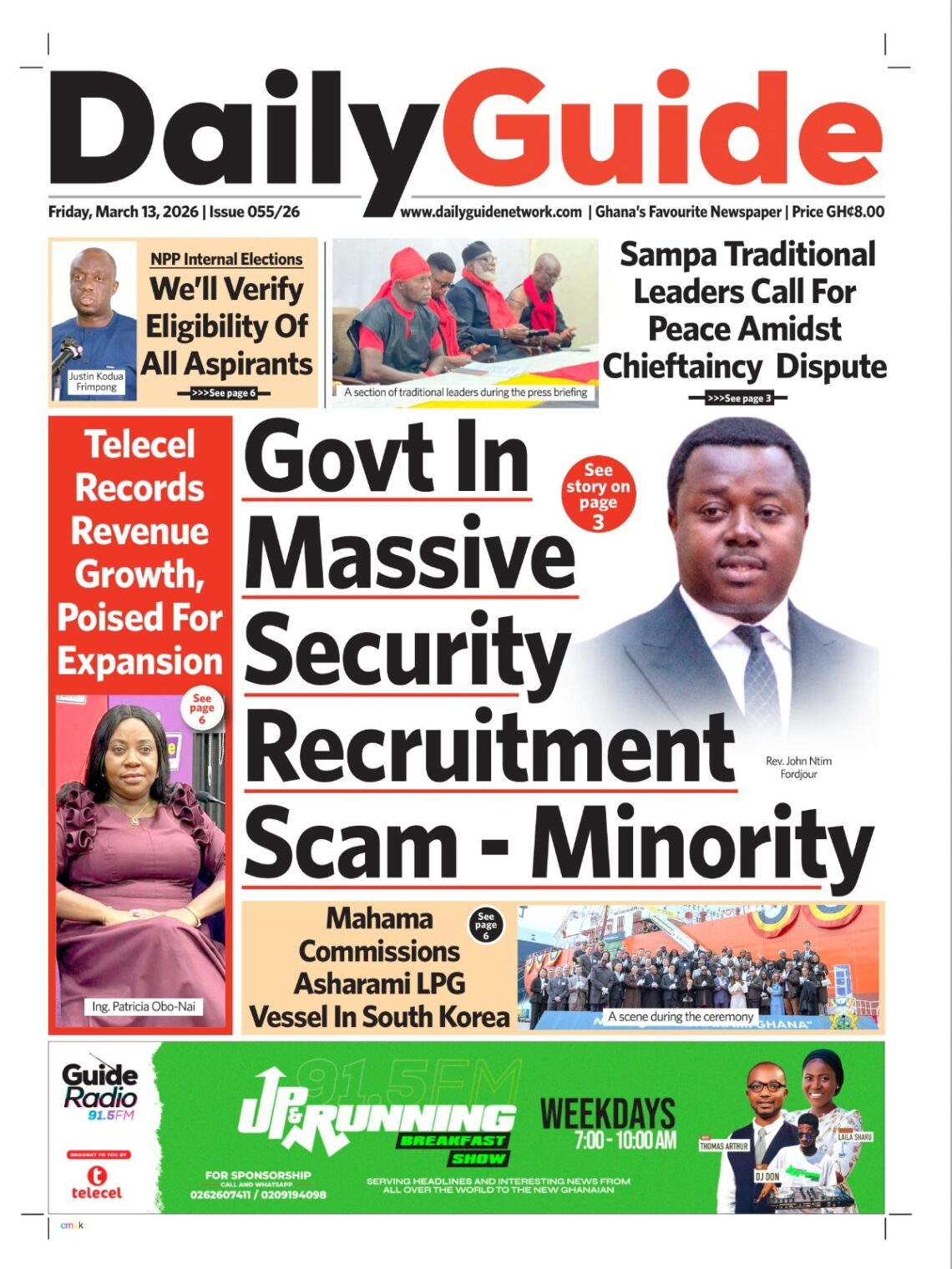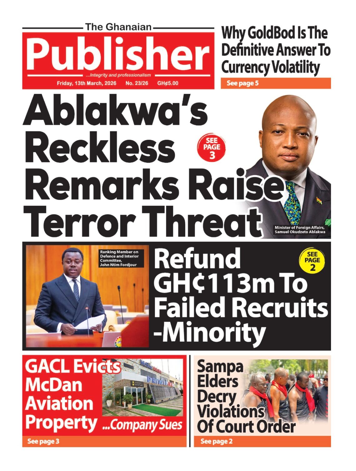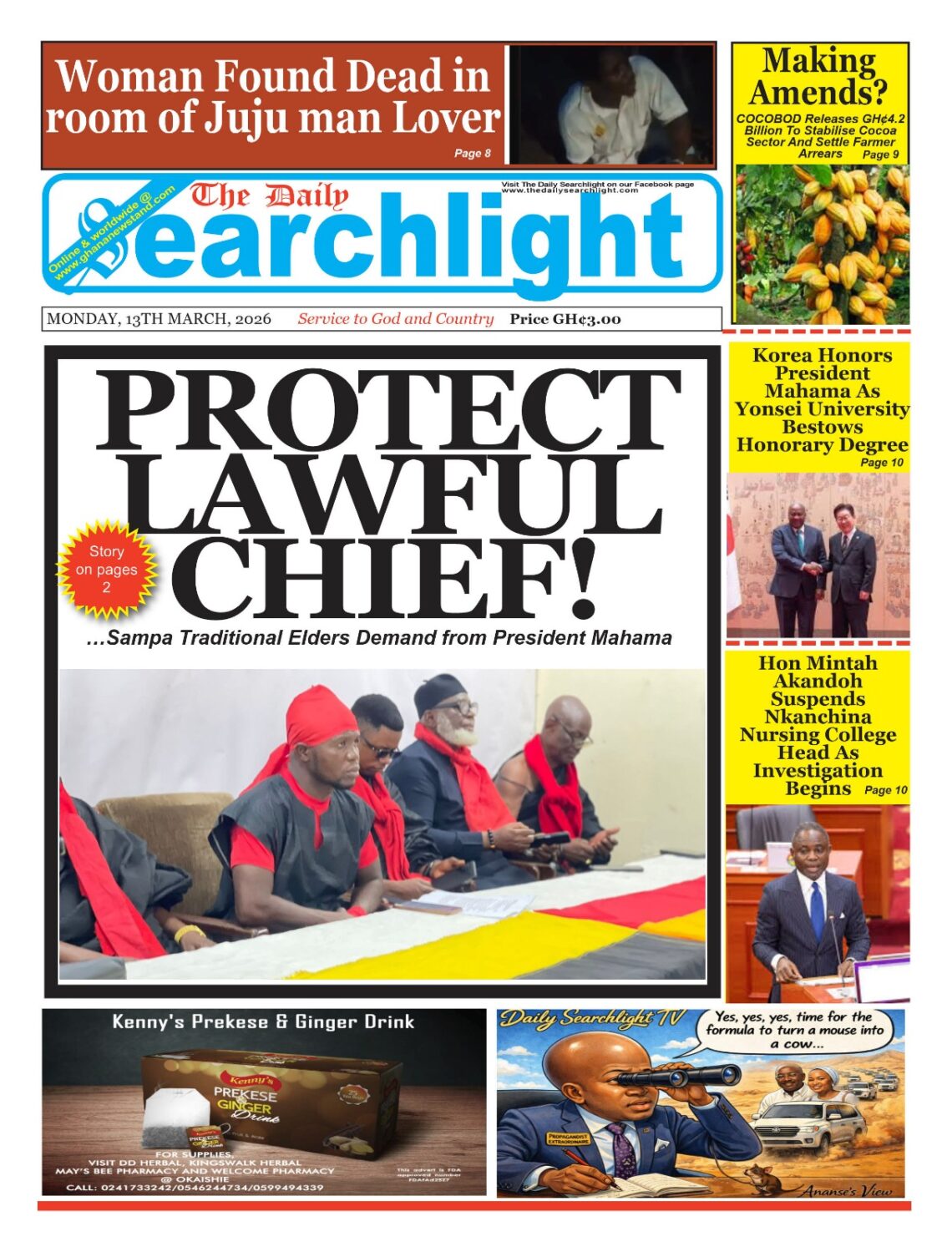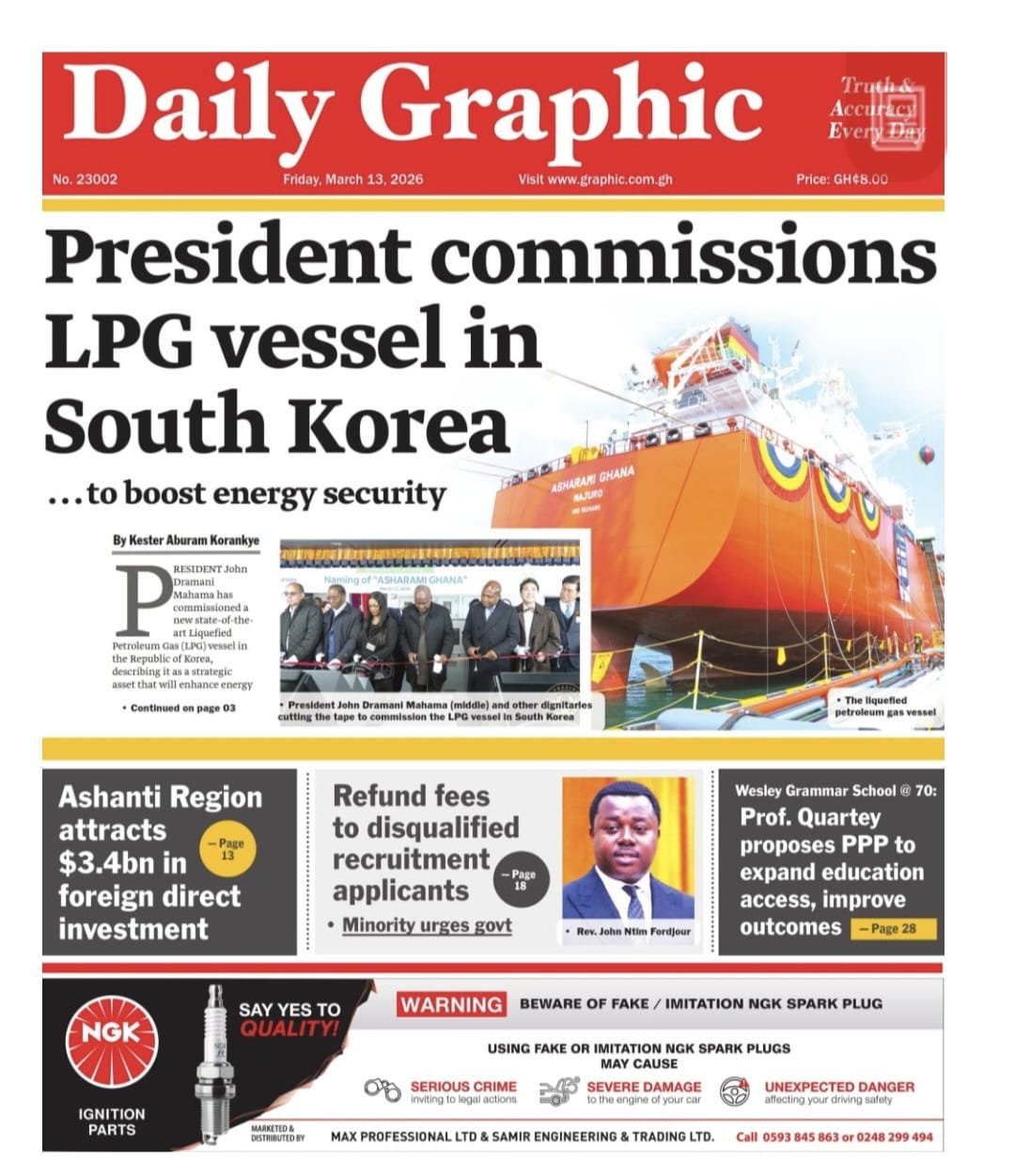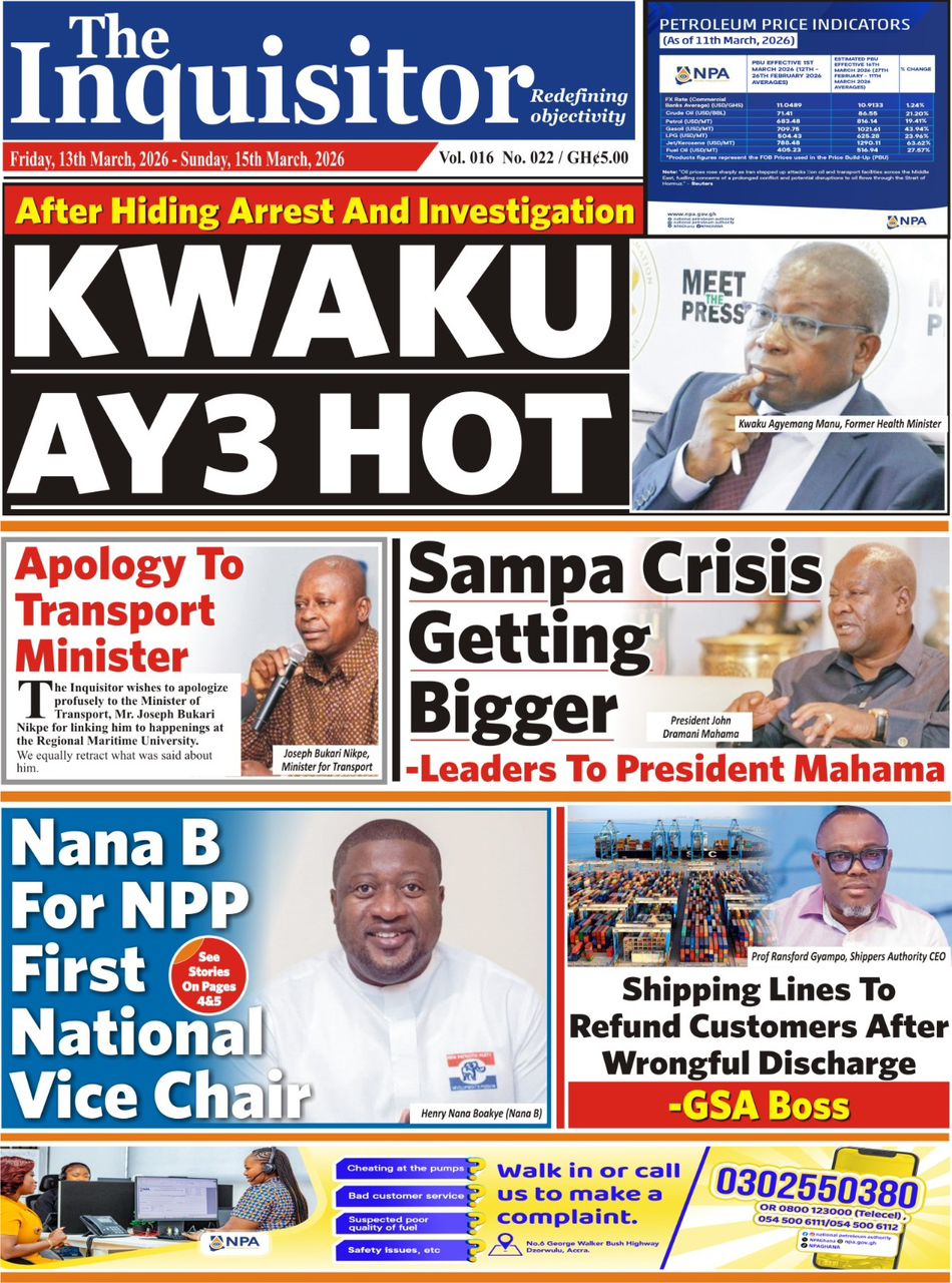 Newspaper headlines: Friday, March 13, 2026 Date: 13 March 2026 By Vincent Ashitey Category: general news Shares Share Tweet Email Share Here are the front pages of some of Ghana’s newspapers today.