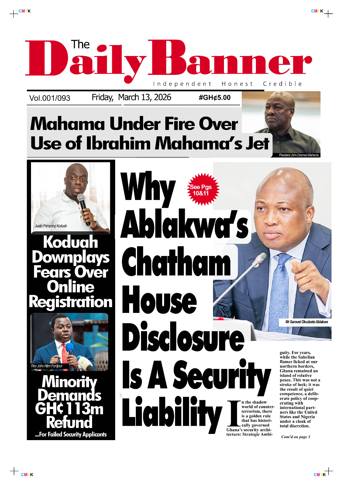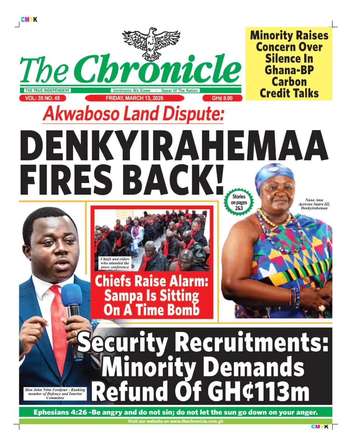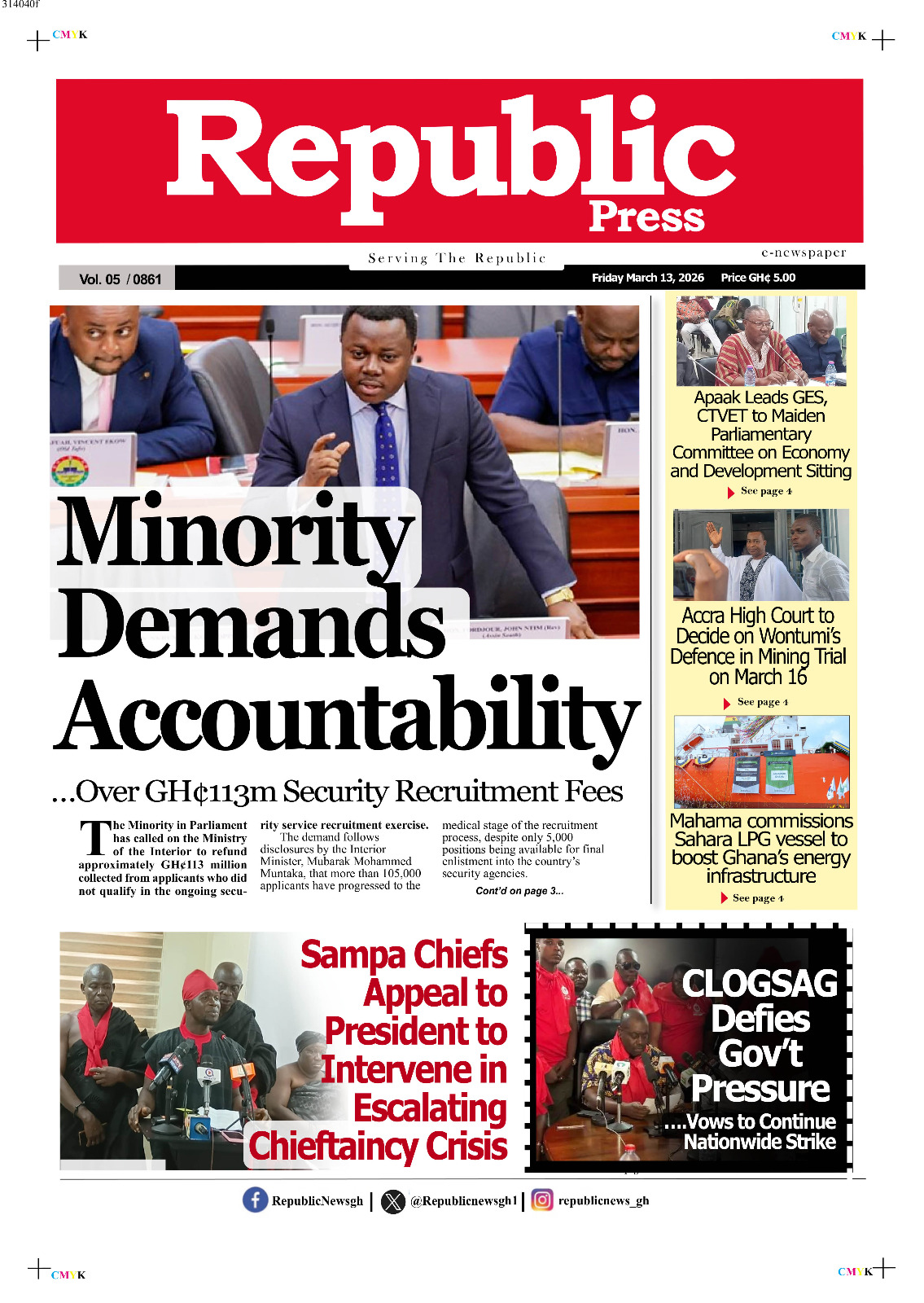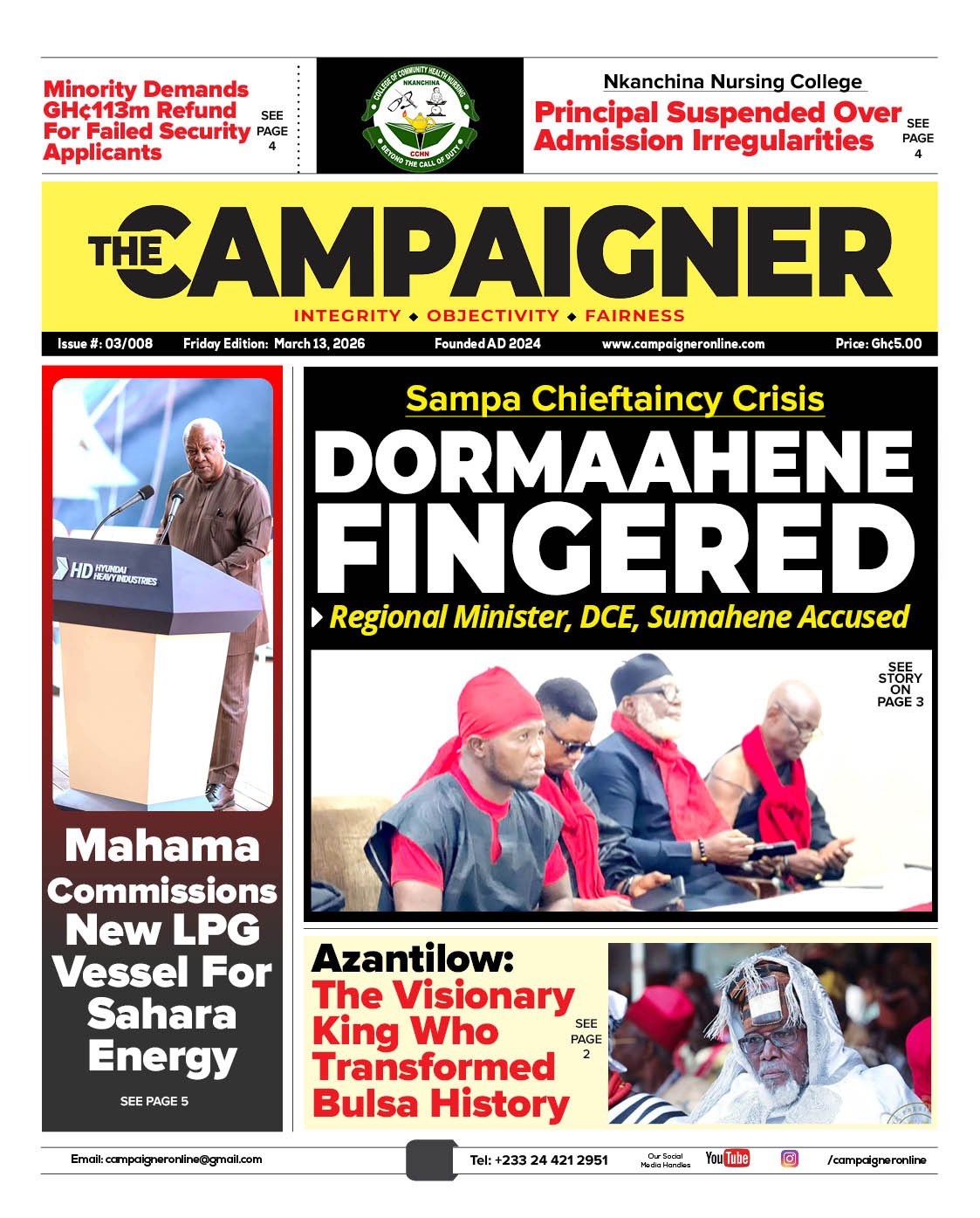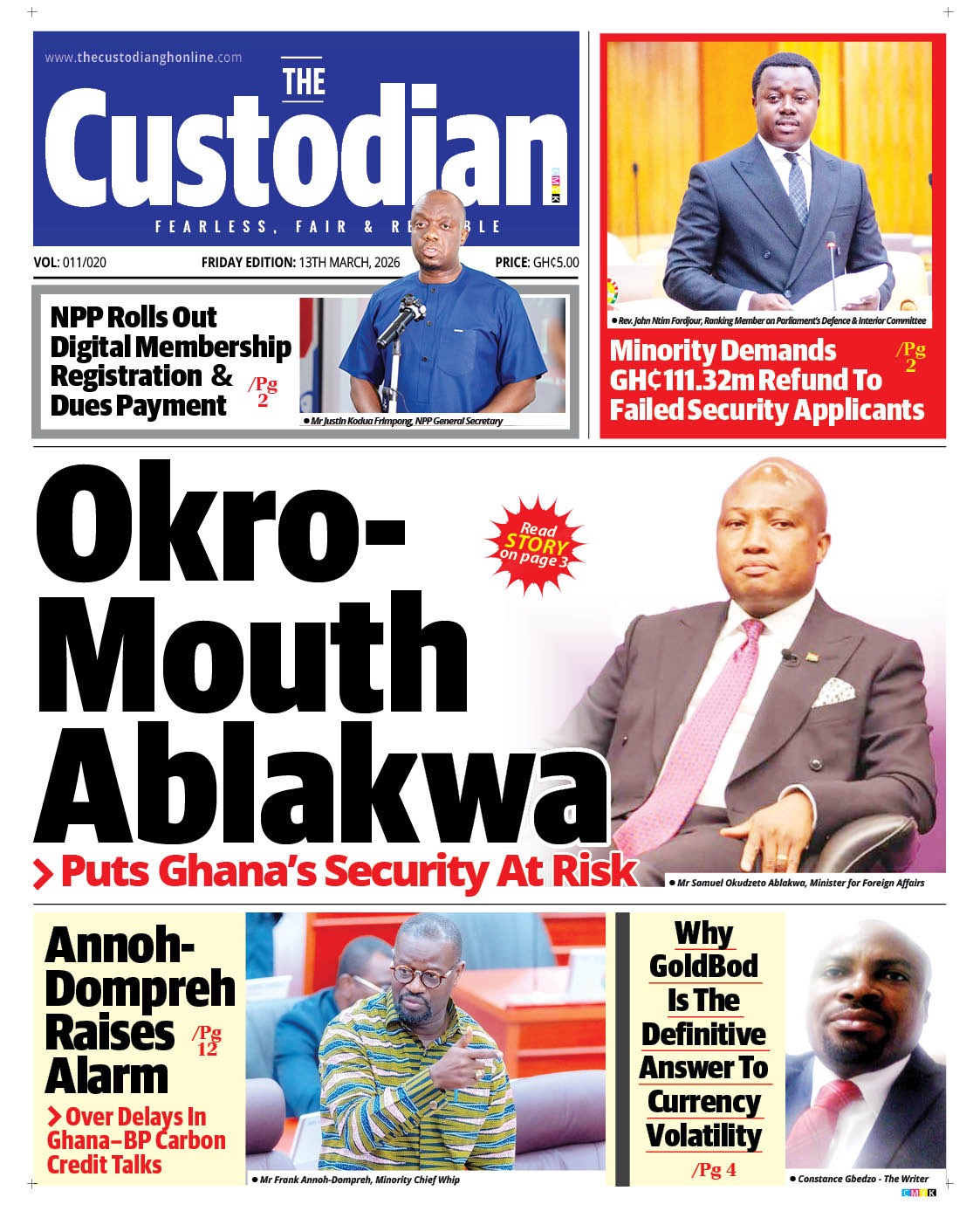 Newspaper headlines: Friday, March 13, 2026 Date: 13 March 2026 By Vincent Ashitey Category: general news Shares Share Tweet Email Share Here are the front pages of some of Ghana’s newspapers today.