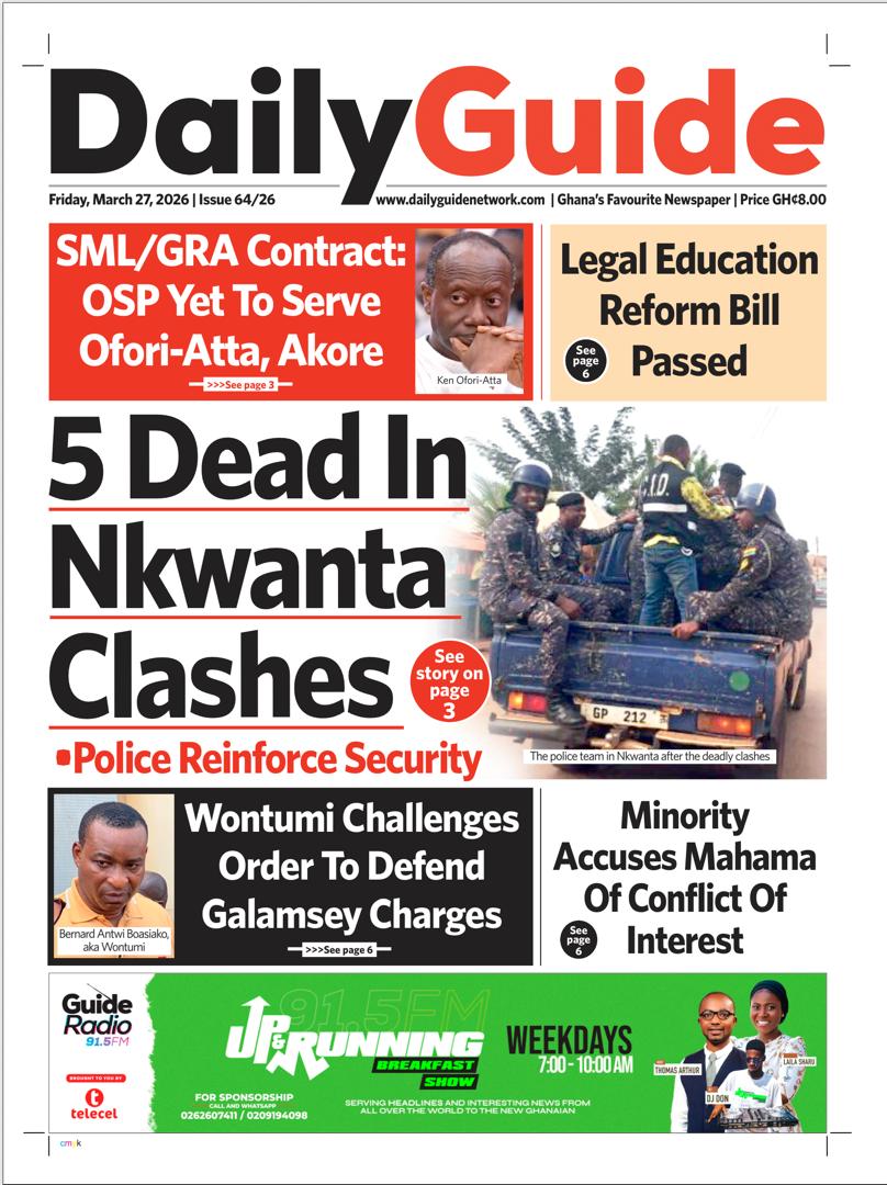 Newspaper headlines: Friday, March 27, 2026 Date: 27 March 2026 By Vincent Ashitey Category: general news Shares Share Tweet Email Share Here are the front pages of some of Ghana’s newspapers today.