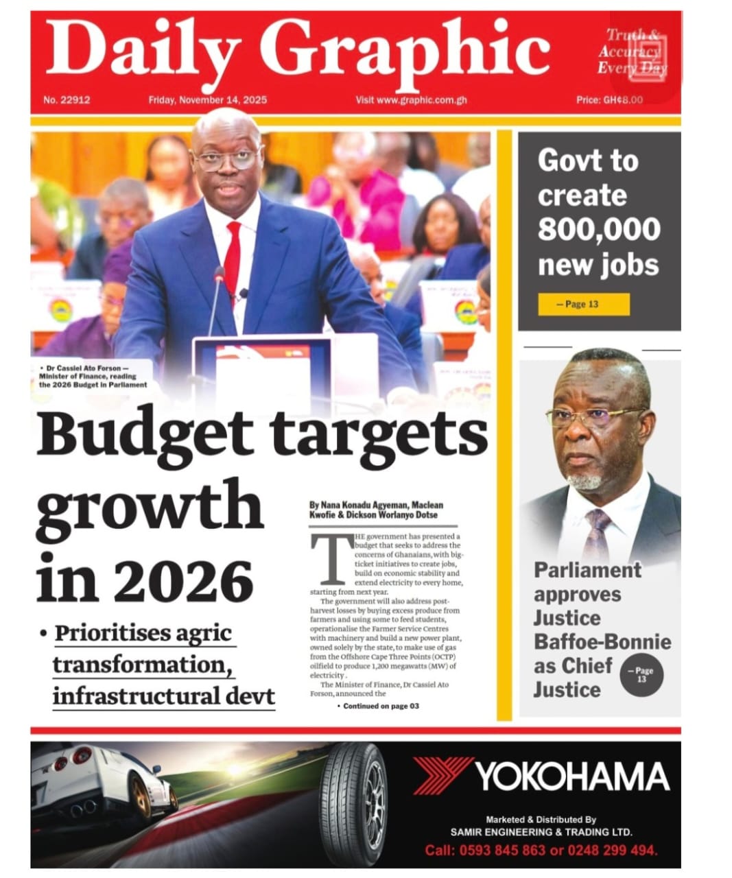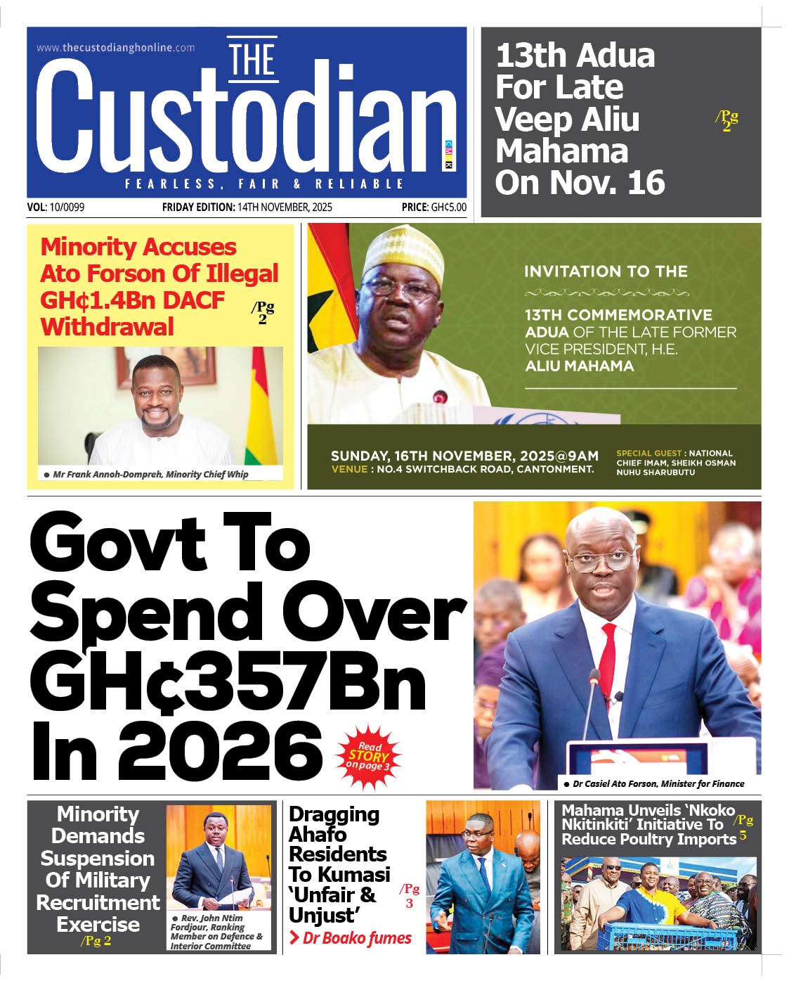 Newspaper headlines: Friday, November 14, 2025 Date: 14 November 2025 By Vincent Ashitey Category: general news Shares Share Tweet Email Share Here are the front pages of some of Ghana’s newspapers today.