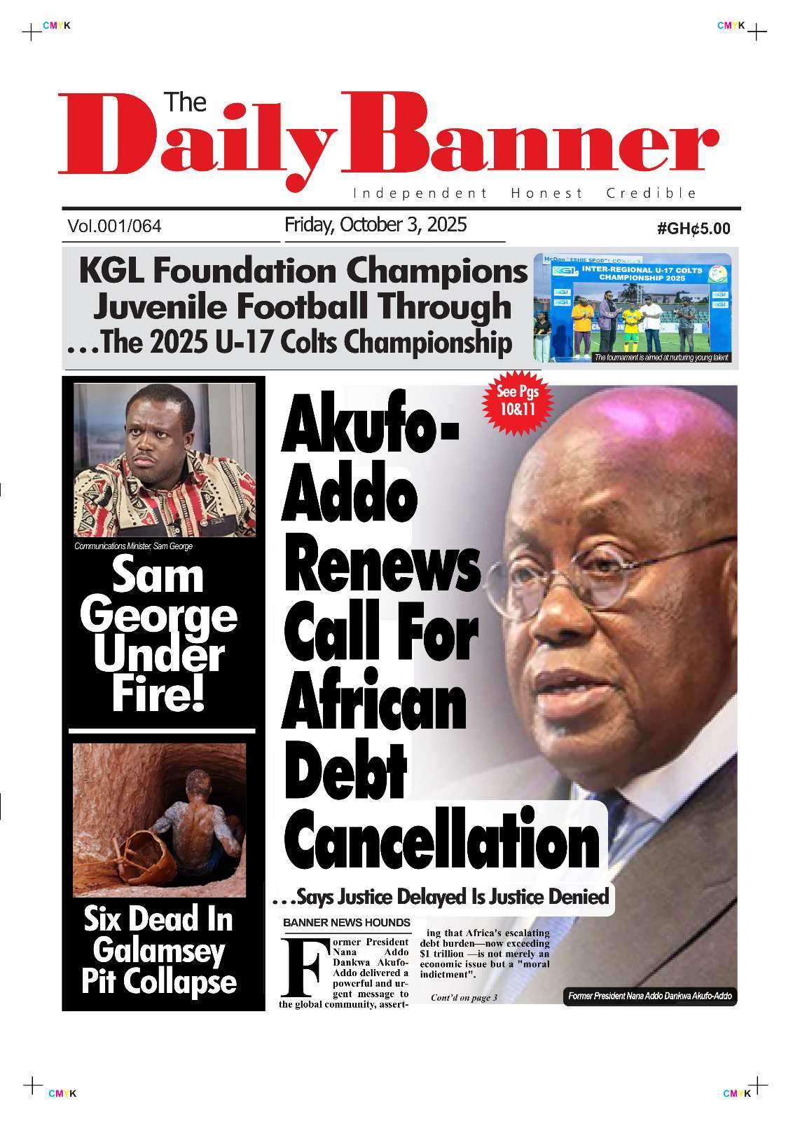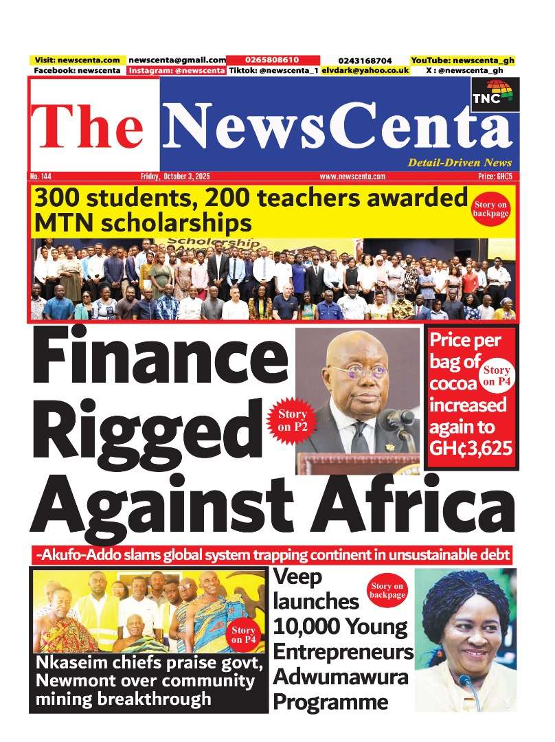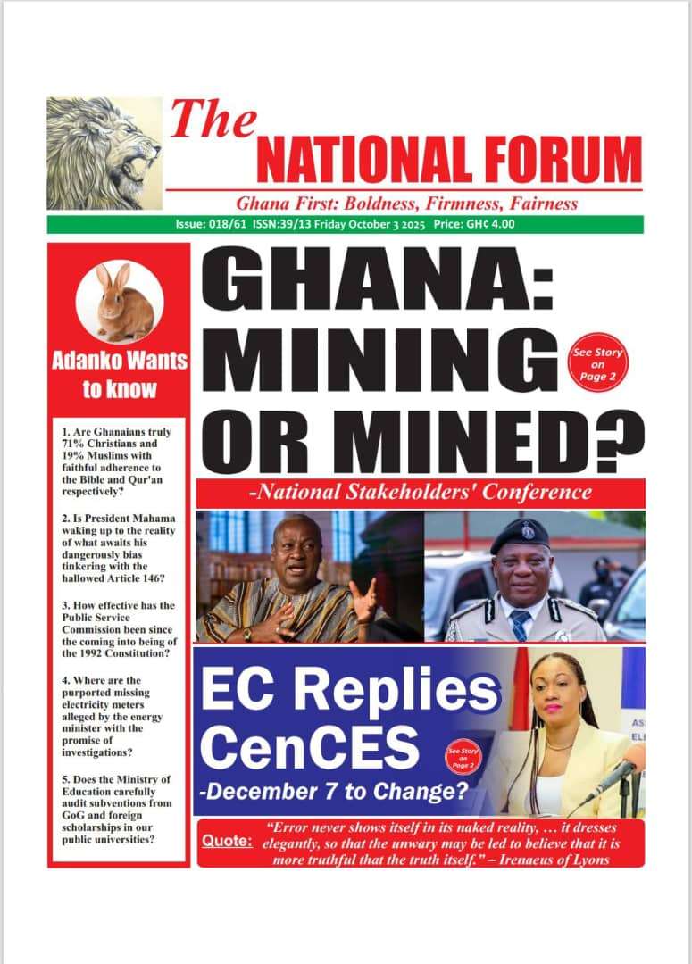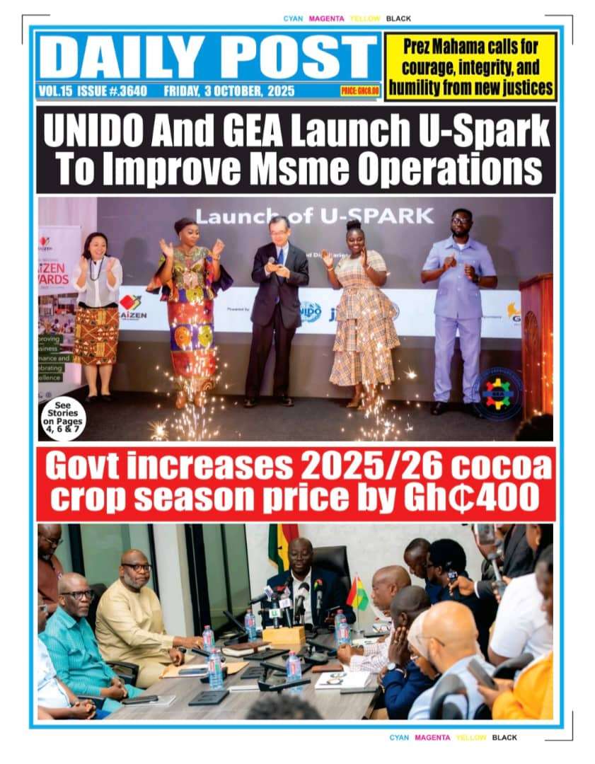 Newspaper headlines: Friday, October 3, 2025 Date: 03 October 2025 By Vincent Ashitey Category: general news Shares Share Tweet Email Share Here are the front pages of some of Ghana’s newspapers today.