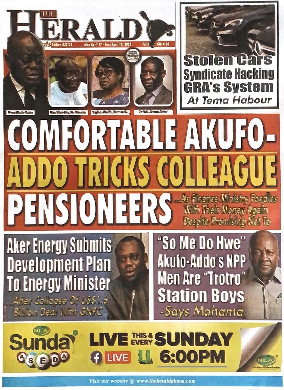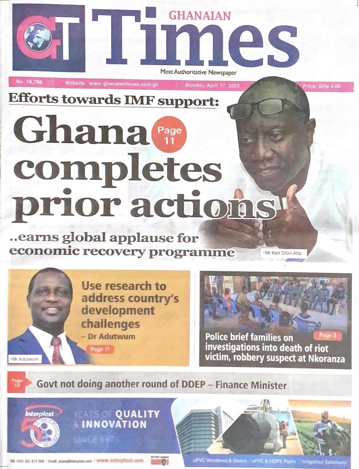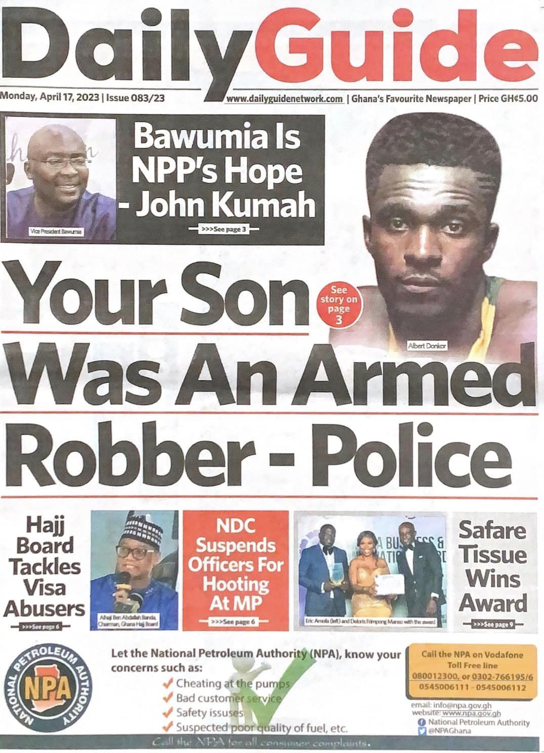 Newspaper headlines: Monday, April 17, 2023 Date: 17 April 2023 By Vincent Ashitey Category: general news Shares Share Tweet Email Share Here are the front pages of some of Ghana's newspapers today.