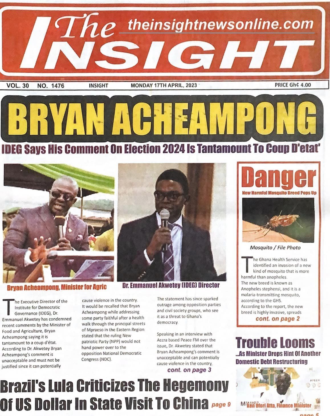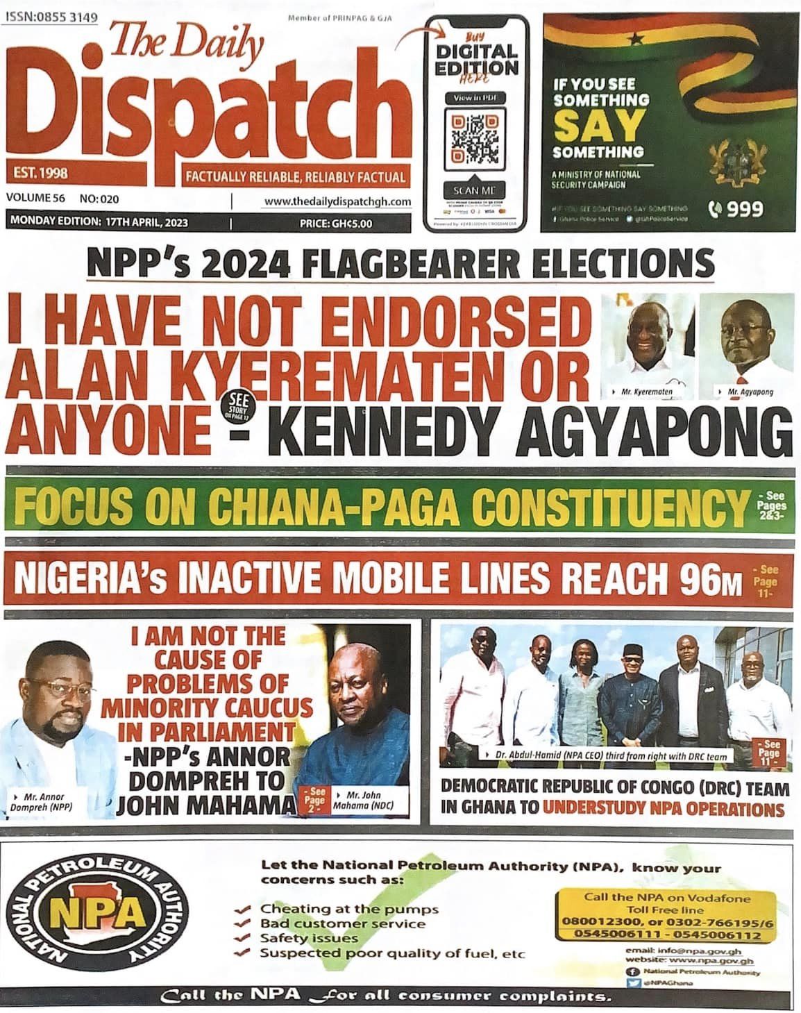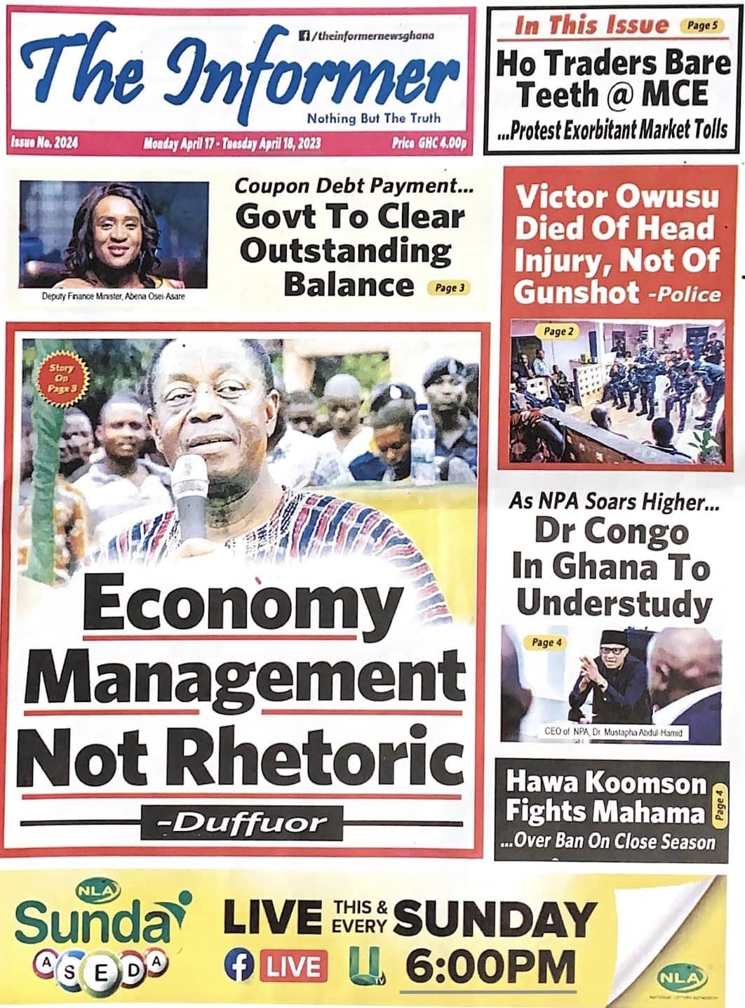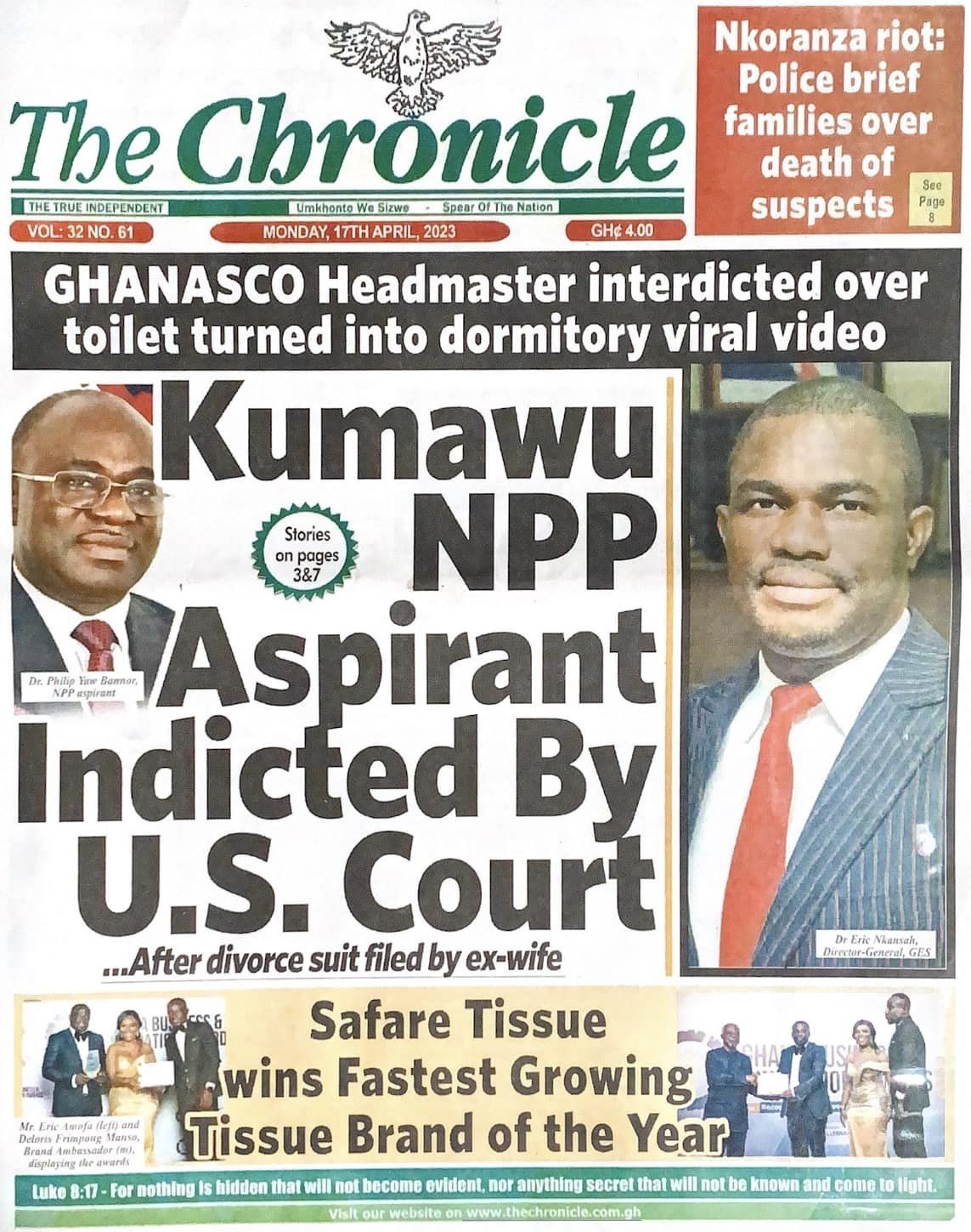Newspaper headlines: Monday, April 17, 2023 Date: 17 April 2023 By Vincent Ashitey Category: general news Shares Share Tweet Email Share Here are the front pages of some of Ghana's newspapers today.