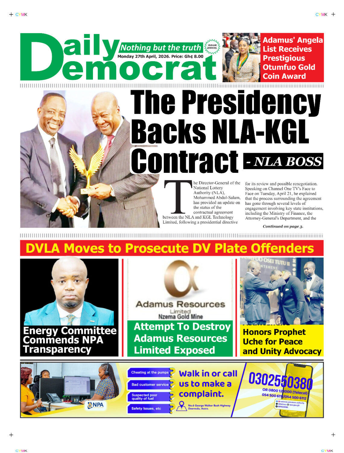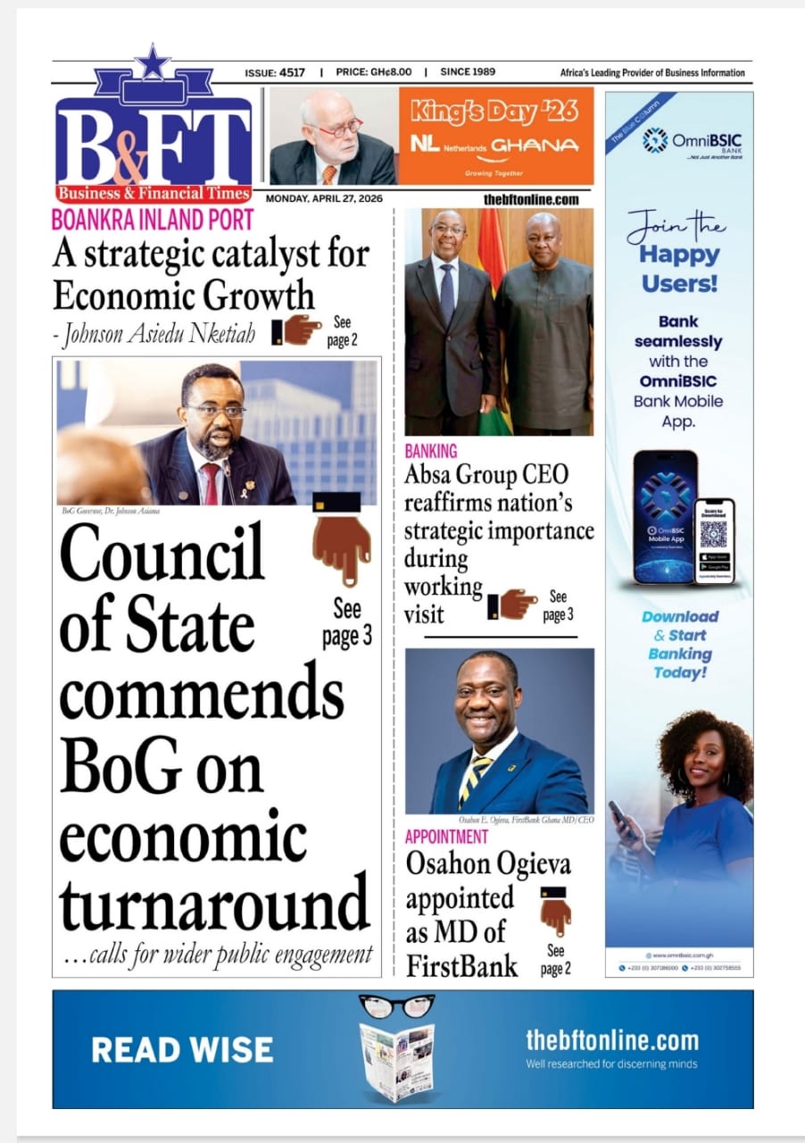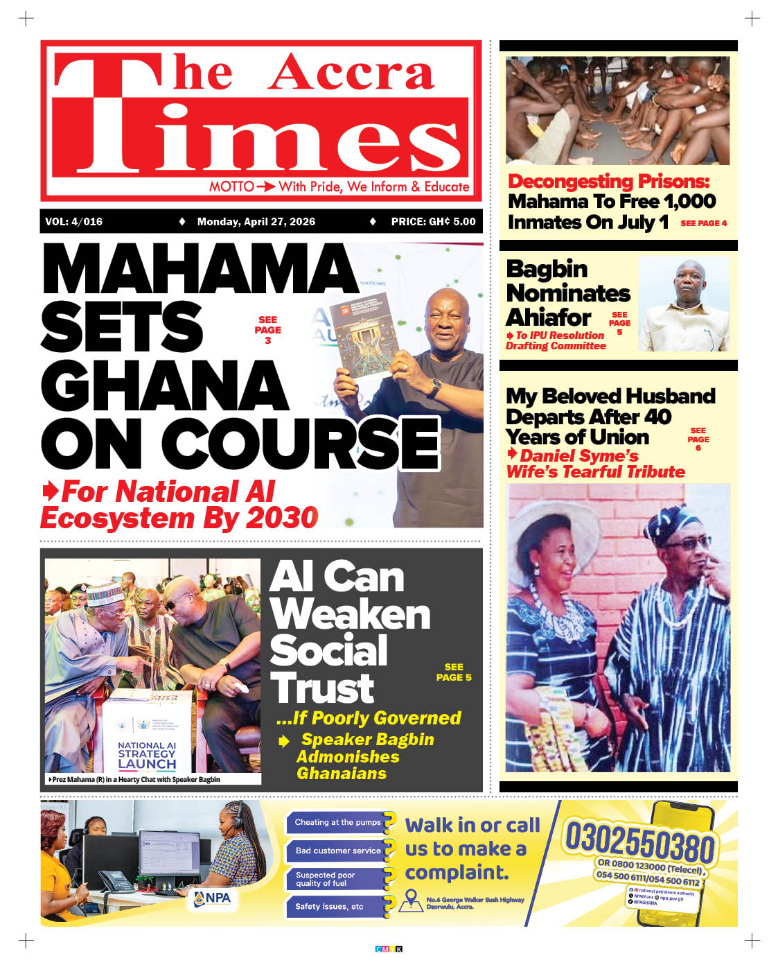 Newspaper headlines: Monday, April 27, 2026 Date: 27 April 2026 By Vincent Ashitey Category: general news Shares Share Tweet Email Share Here are the front pages of some of Ghana’s newspapers today.