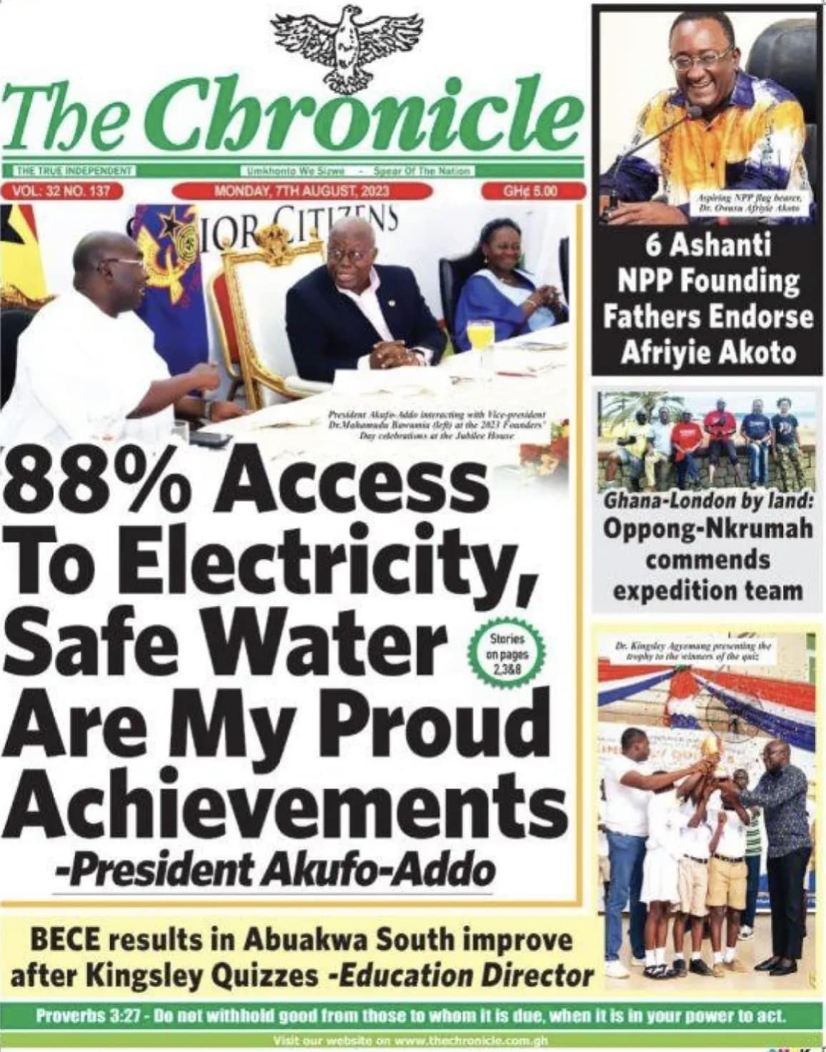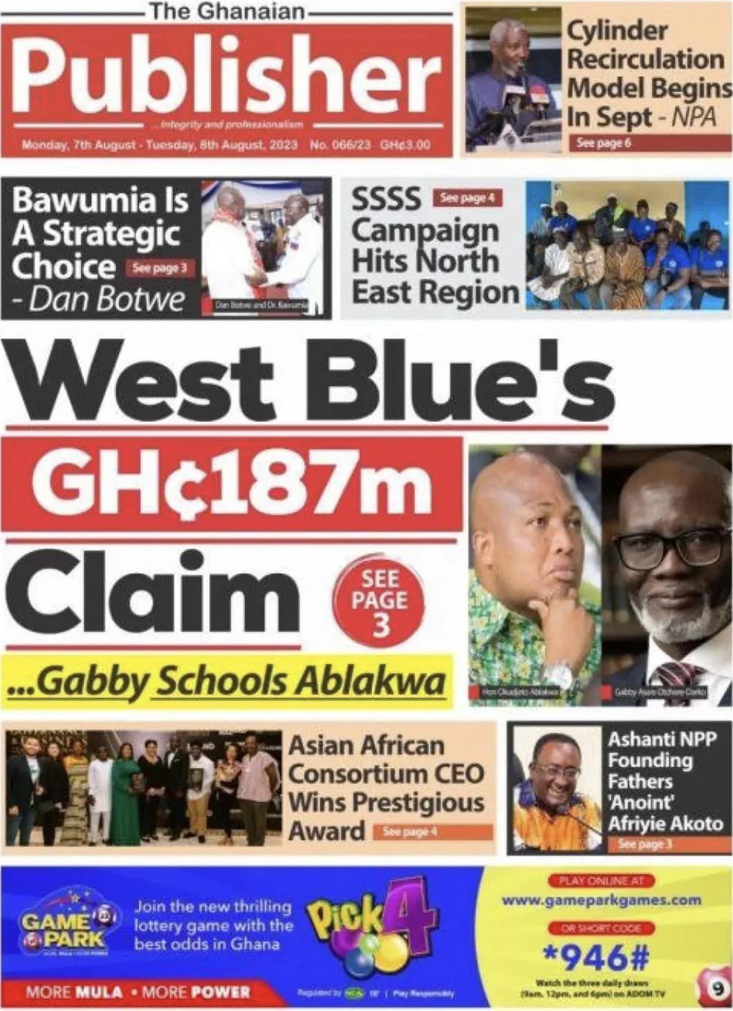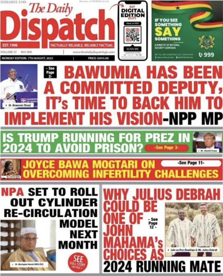 Newspaper headlines: Monday, August 7, 2023 Date: 07 August 2023 By Vincent Ashitey Category: general news Shares Share Tweet Email Share Here are the front pages of some of Ghana’s newspapers today.