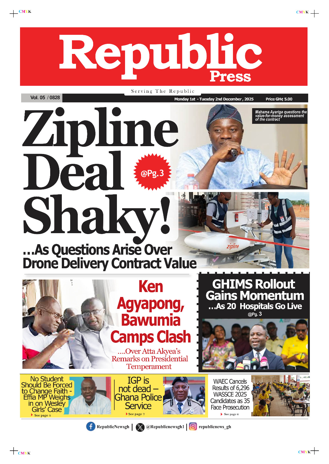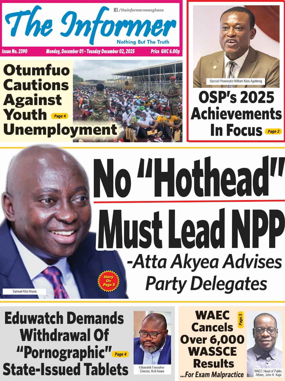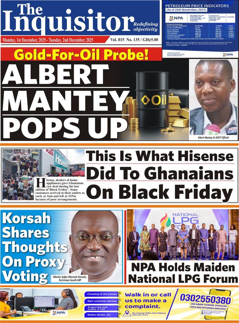 Newspaper headlines: Monday, December 1, 2025 Date: 01 December 2025 By Vincent Ashitey Category: general news Shares Share Tweet Email Share Here are the front pages of some of Ghana’s newspapers today.