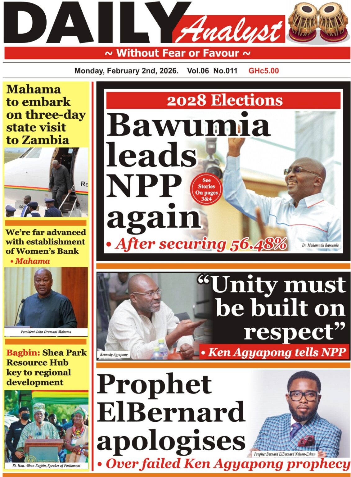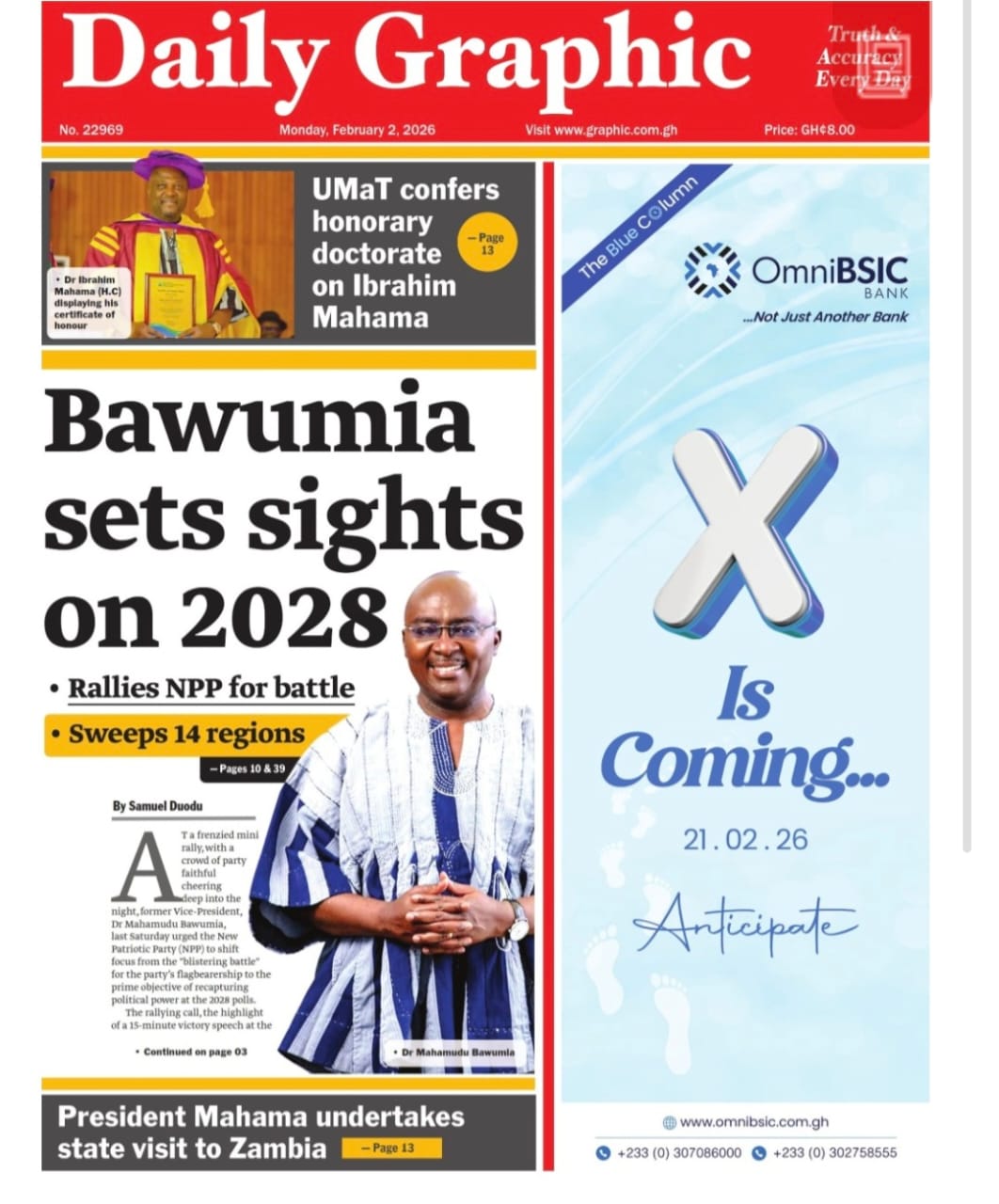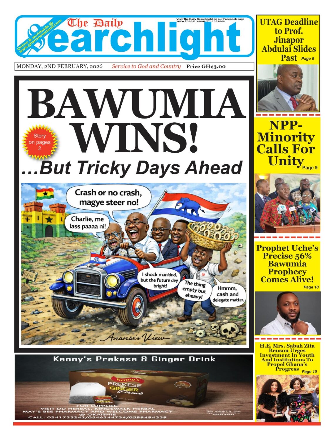 Newspaper headlines: Monday, February 2, 2026 Date: 02 February 2026 By Vincent Ashitey Category: general news Shares Share Tweet Email Share Here are the front pages of some of Ghana’s newspapers today.