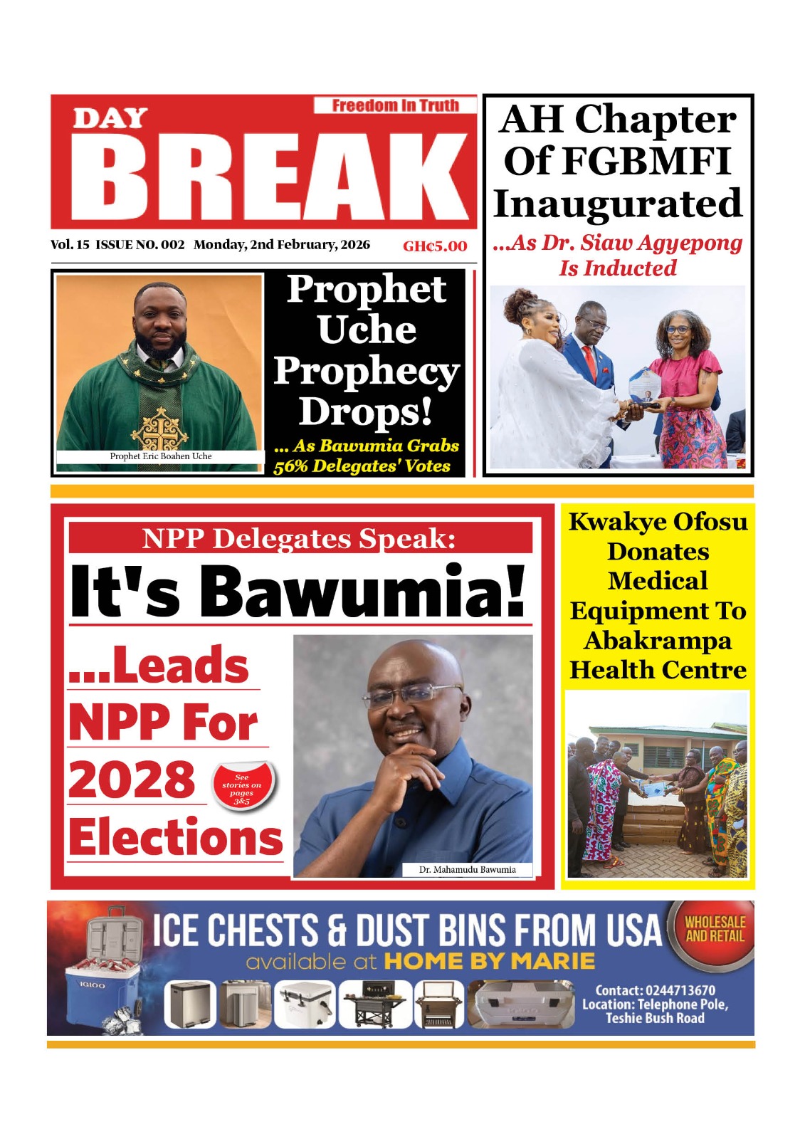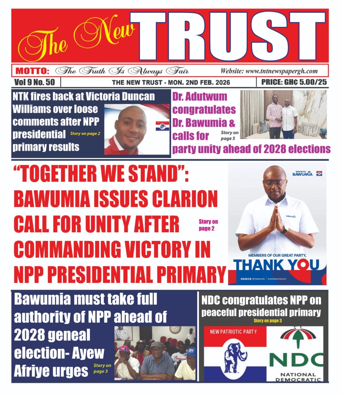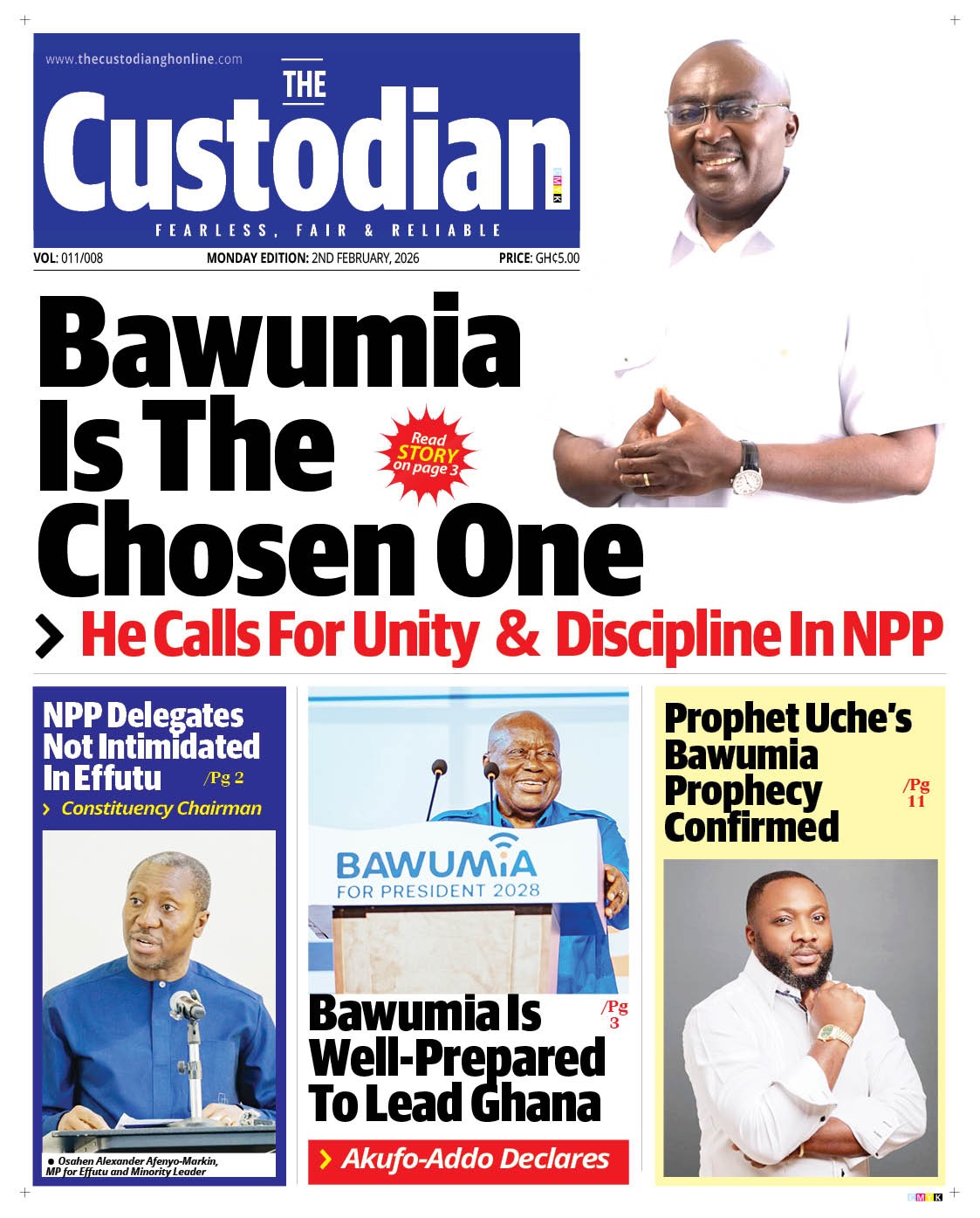 Newspaper headlines: Monday, February 2, 2026 Date: 02 February 2026 By Vincent Ashitey Category: general news Shares Share Tweet Email Share Here are the front pages of some of Ghana’s newspapers today.