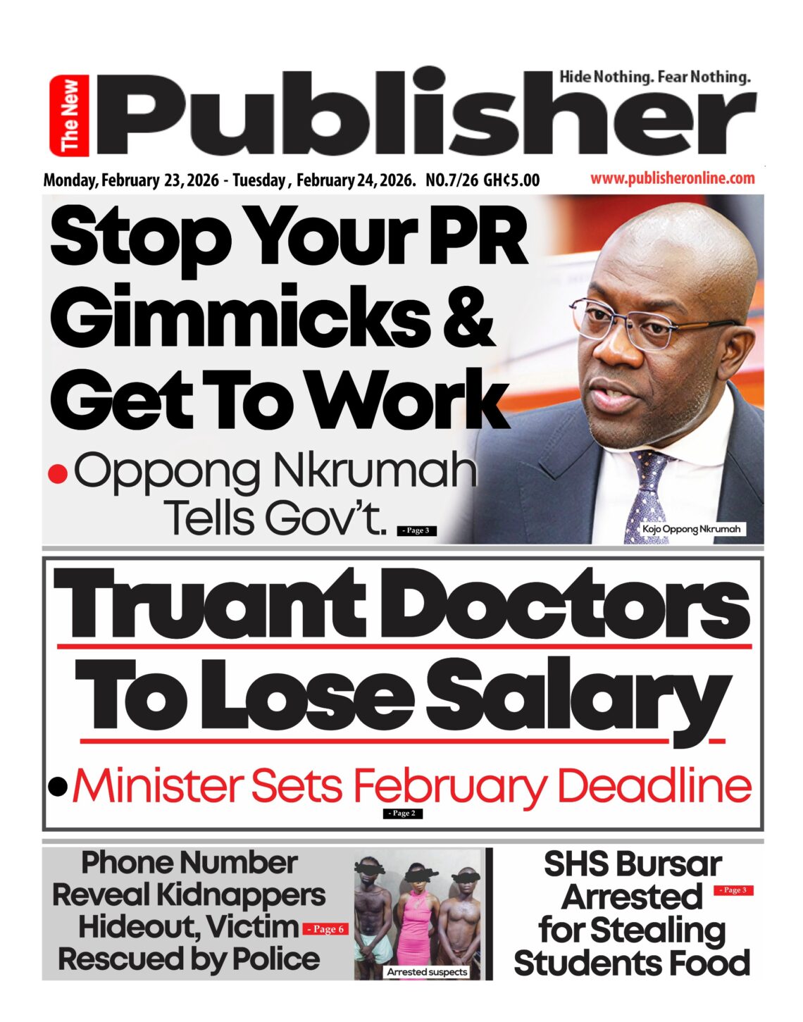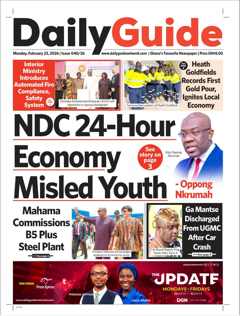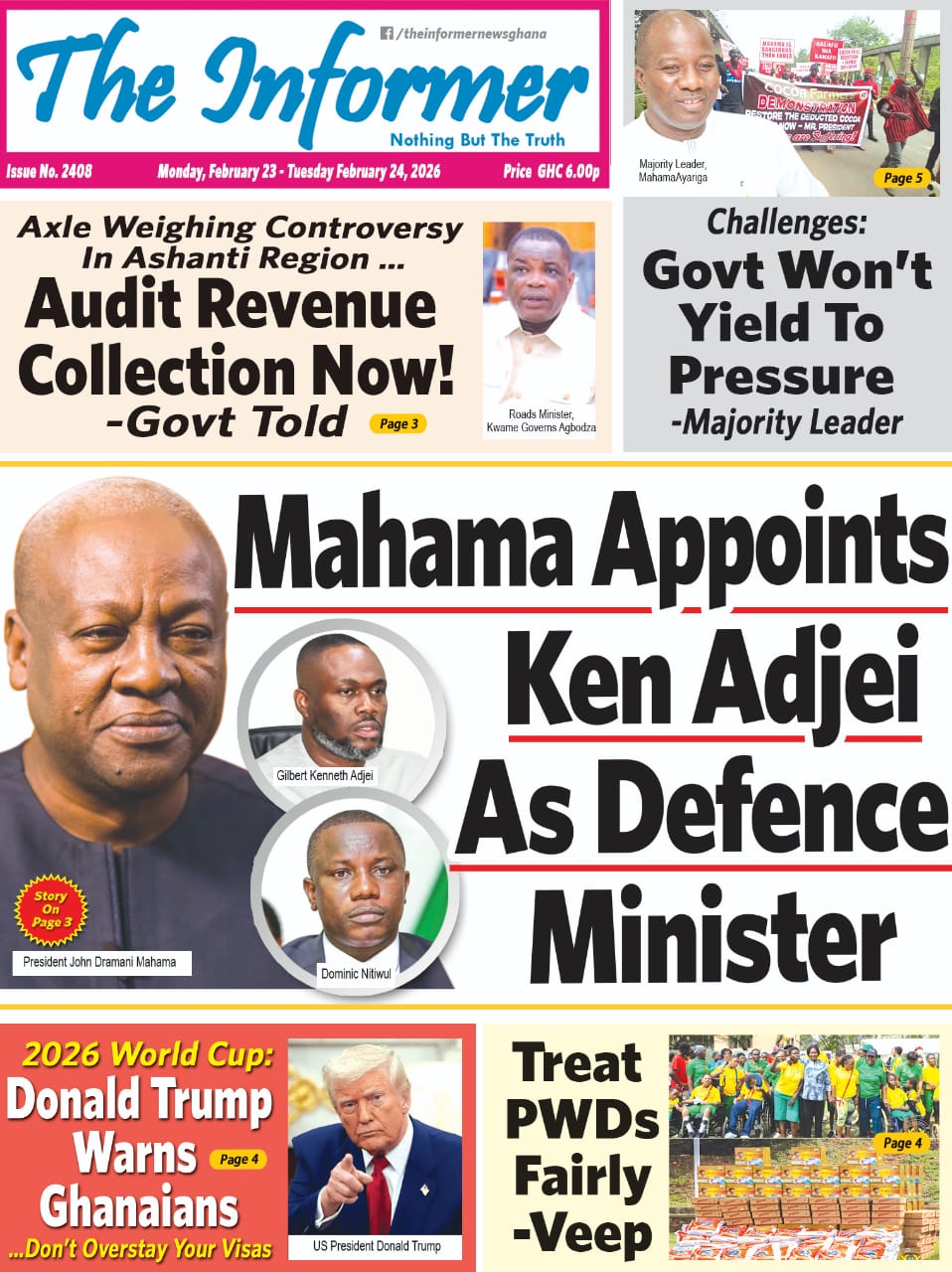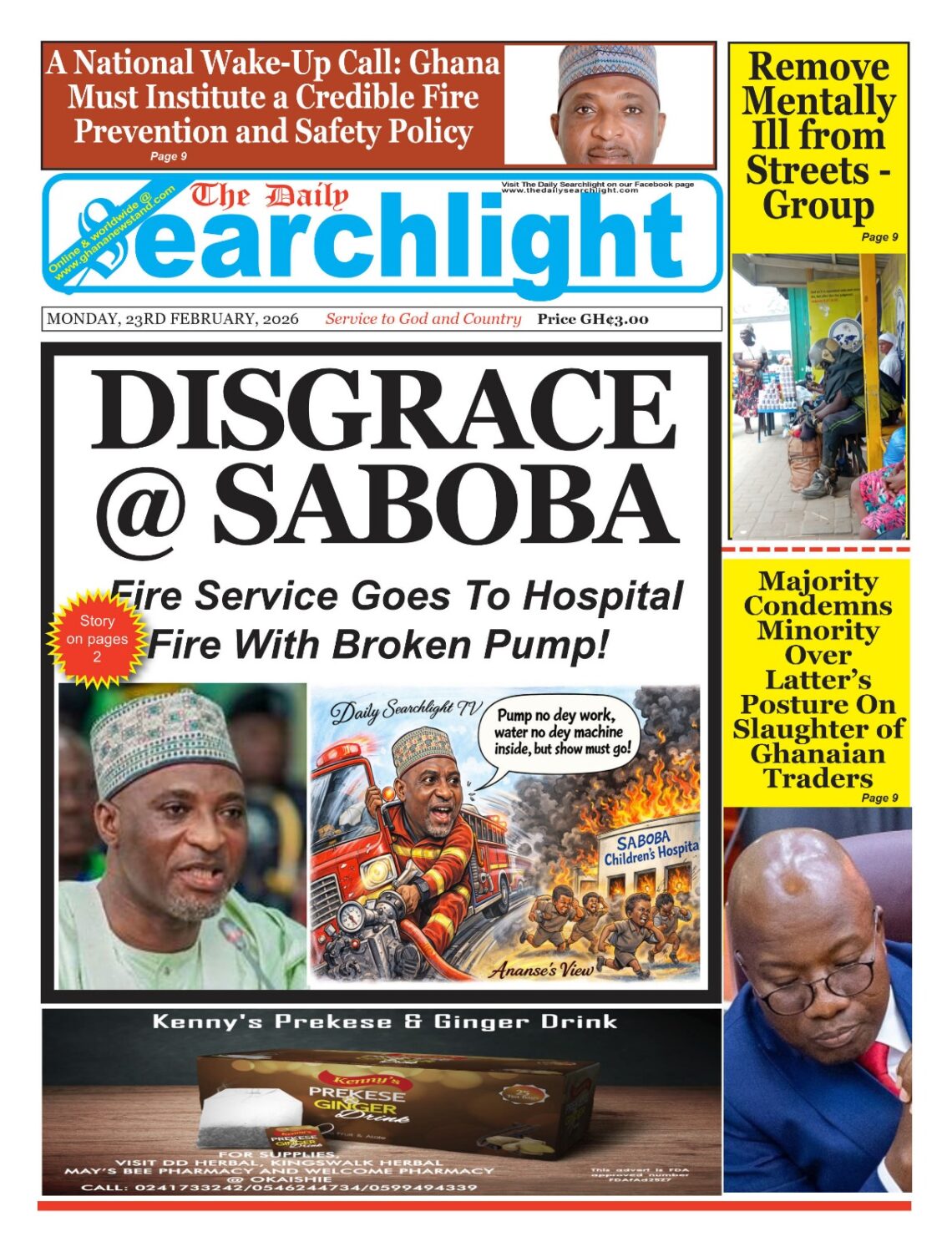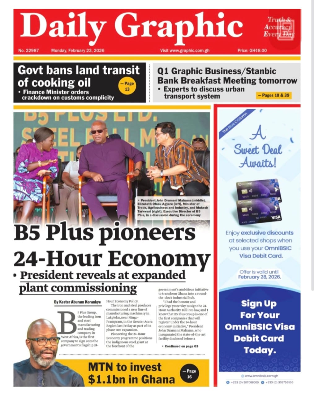 Newspaper headlines: Monday, February 23, 2026 Date: 23 February 2026 By Vincent Ashitey Category: general news Shares Share Tweet Email Share Here are the front pages of some of Ghana’s newspapers today.