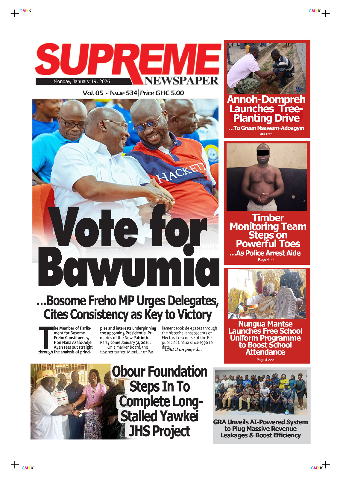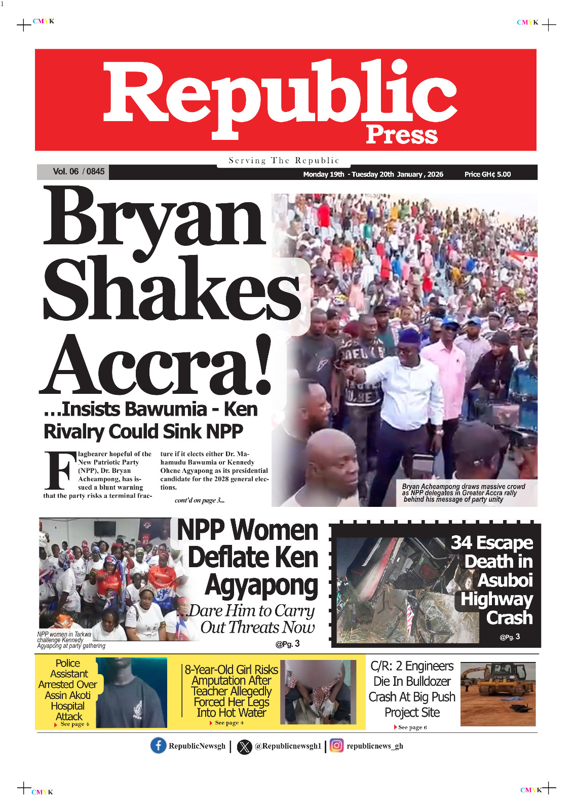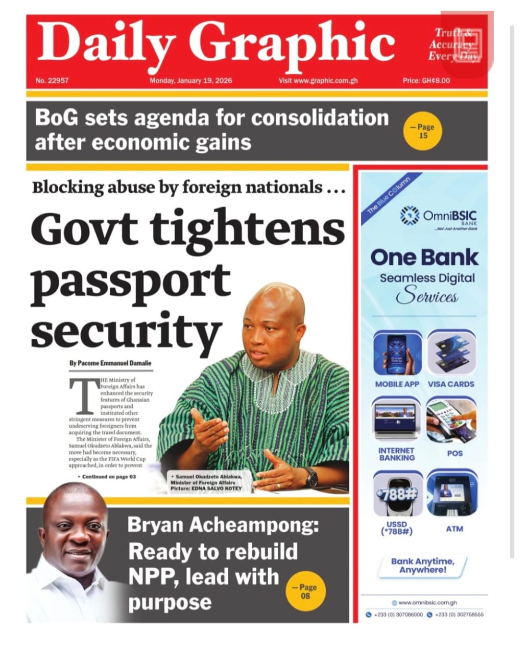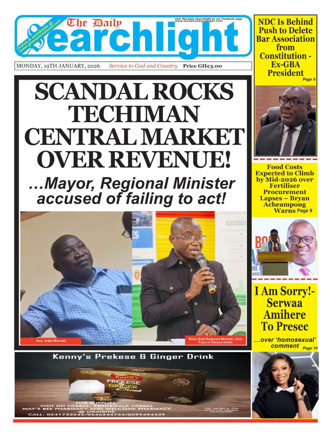 Newspaper headlines: Monday, January 19, 2026 Date: 19 January 2026 By Vincent Ashitey Category: general news Shares Share Tweet Email Share Here are the front pages of some of Ghana’s newspapers today.