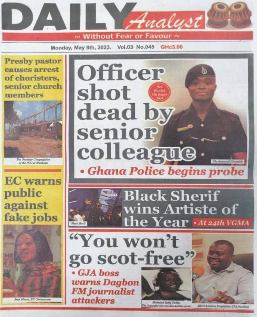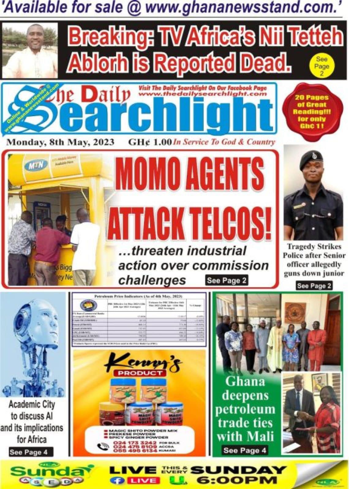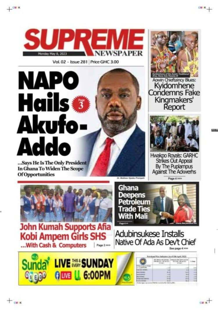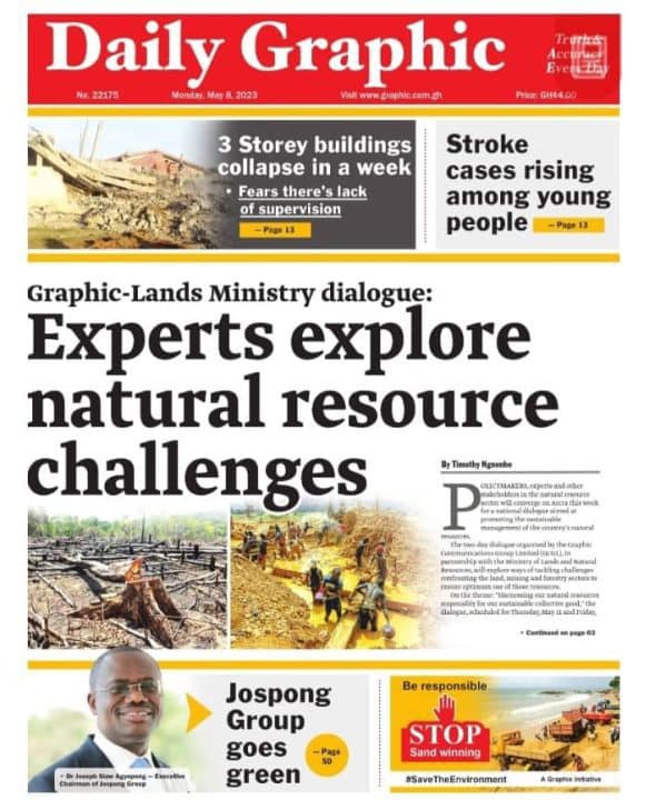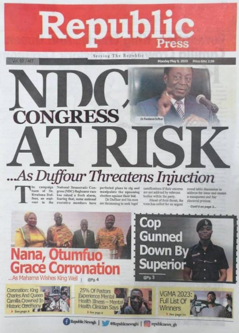 Newspaper headlines: Monday, May 8, 2023 Date: 08 May 2023 By Vincent Ashitey Category: general news Shares Share Tweet Email Share Here are the front pages of some of Ghana's newspapers today.