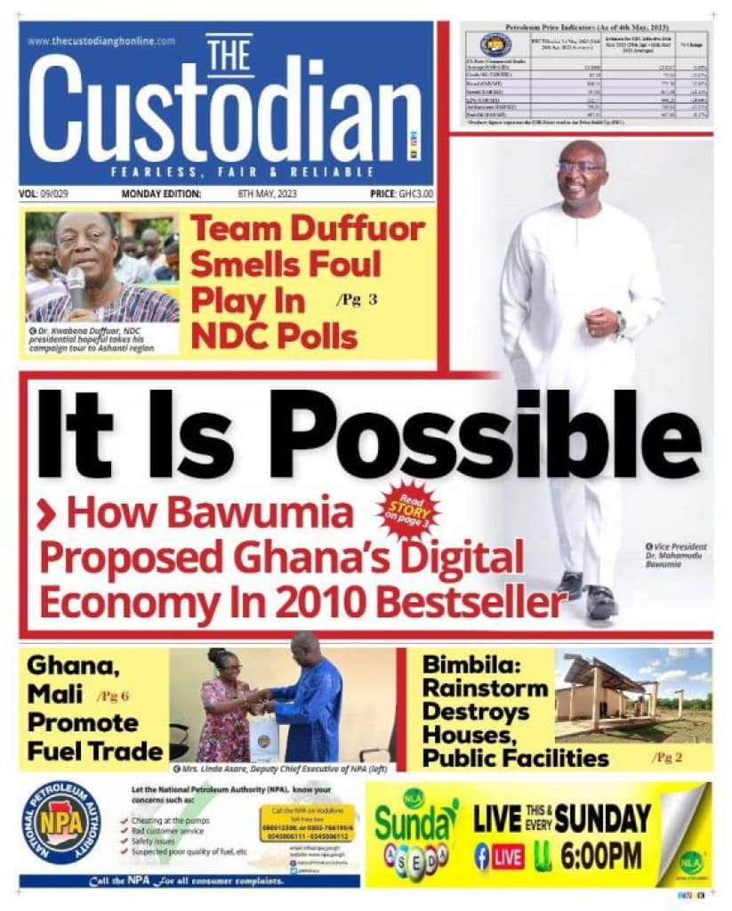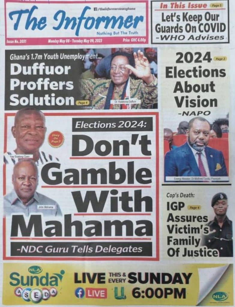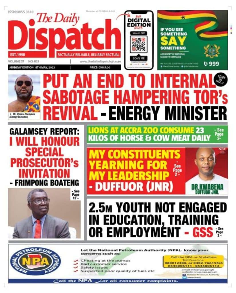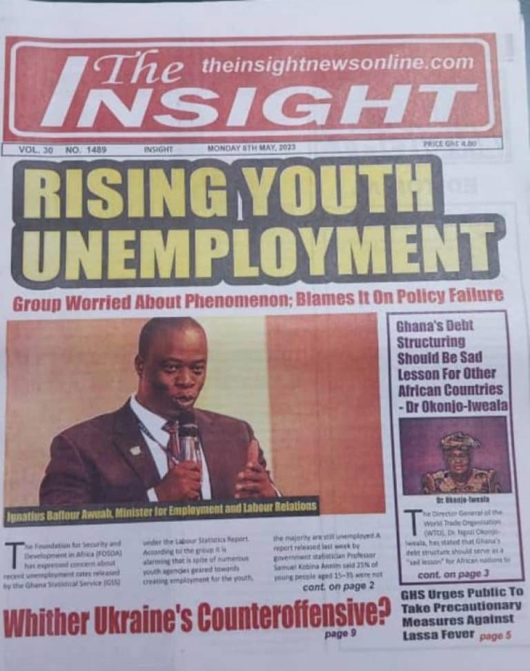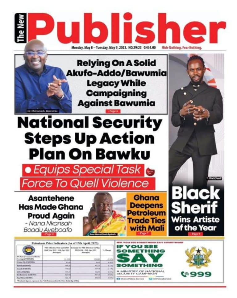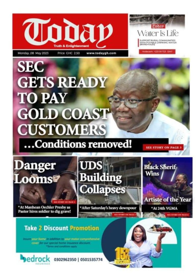 Newspaper headlines: Monday, May 8, 2023 Date: 08 May 2023 By Vincent Ashitey Category: general news Shares Share Tweet Email Share Here are the front pages of some of Ghana's newspapers today.